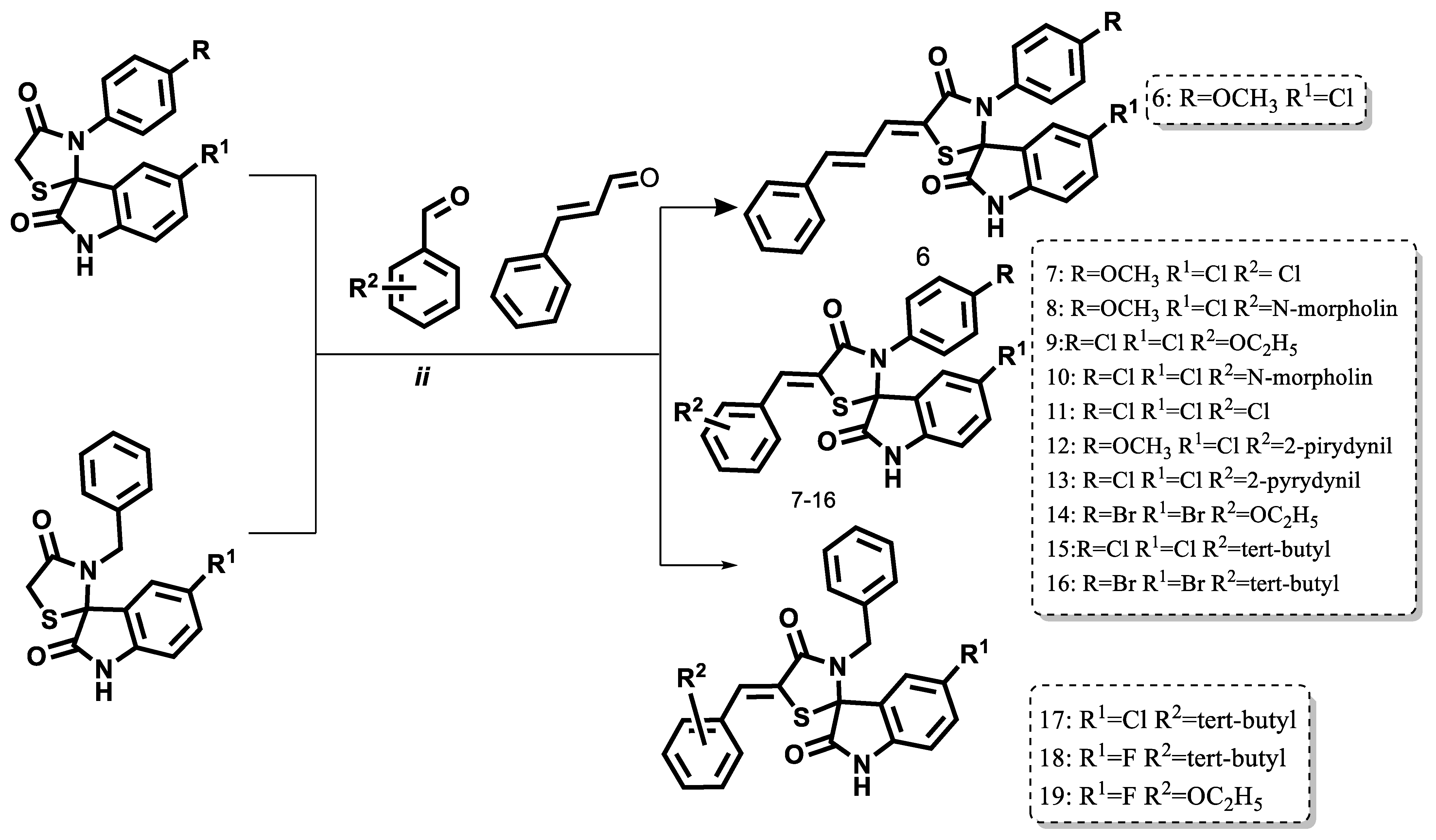 4.1.3. Synthesis and Characterization of 5-Arylidene Derivatives of Spiro[3H-indol-3,2′-thiazolidin]-2,4′(1H)-diones (Compounds 6–19)