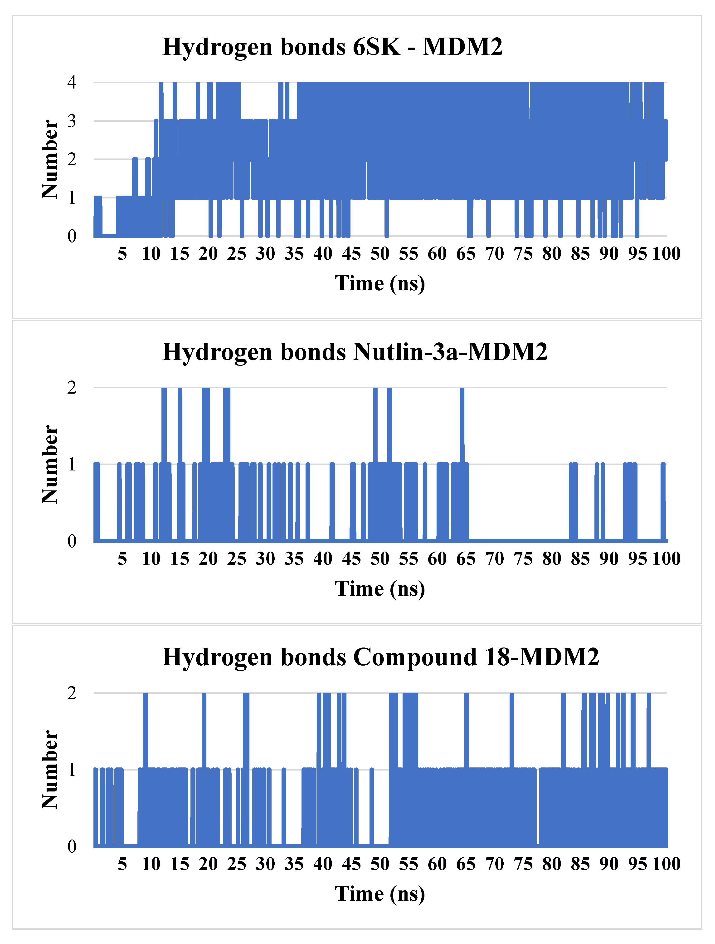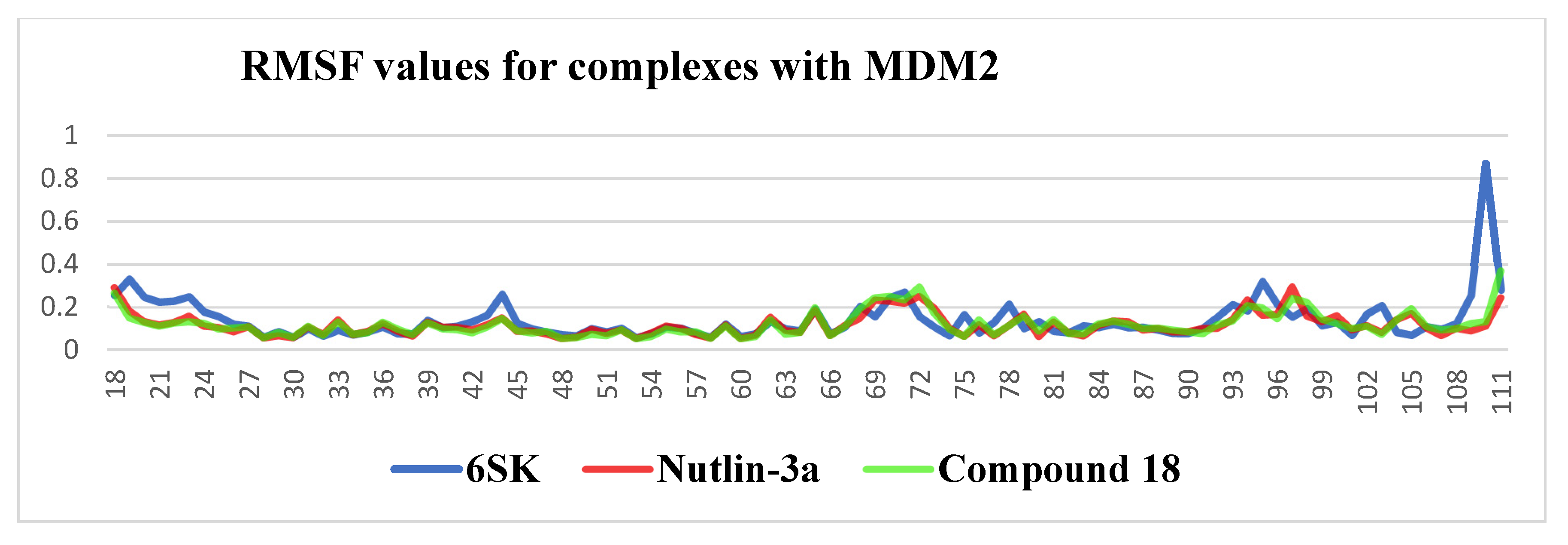 | Residue (Interaction) | Compound 18 Time of Interaction (%) | 6SK Time of Interaction (%) | Nutlin-3a Time of Interaction (%) |