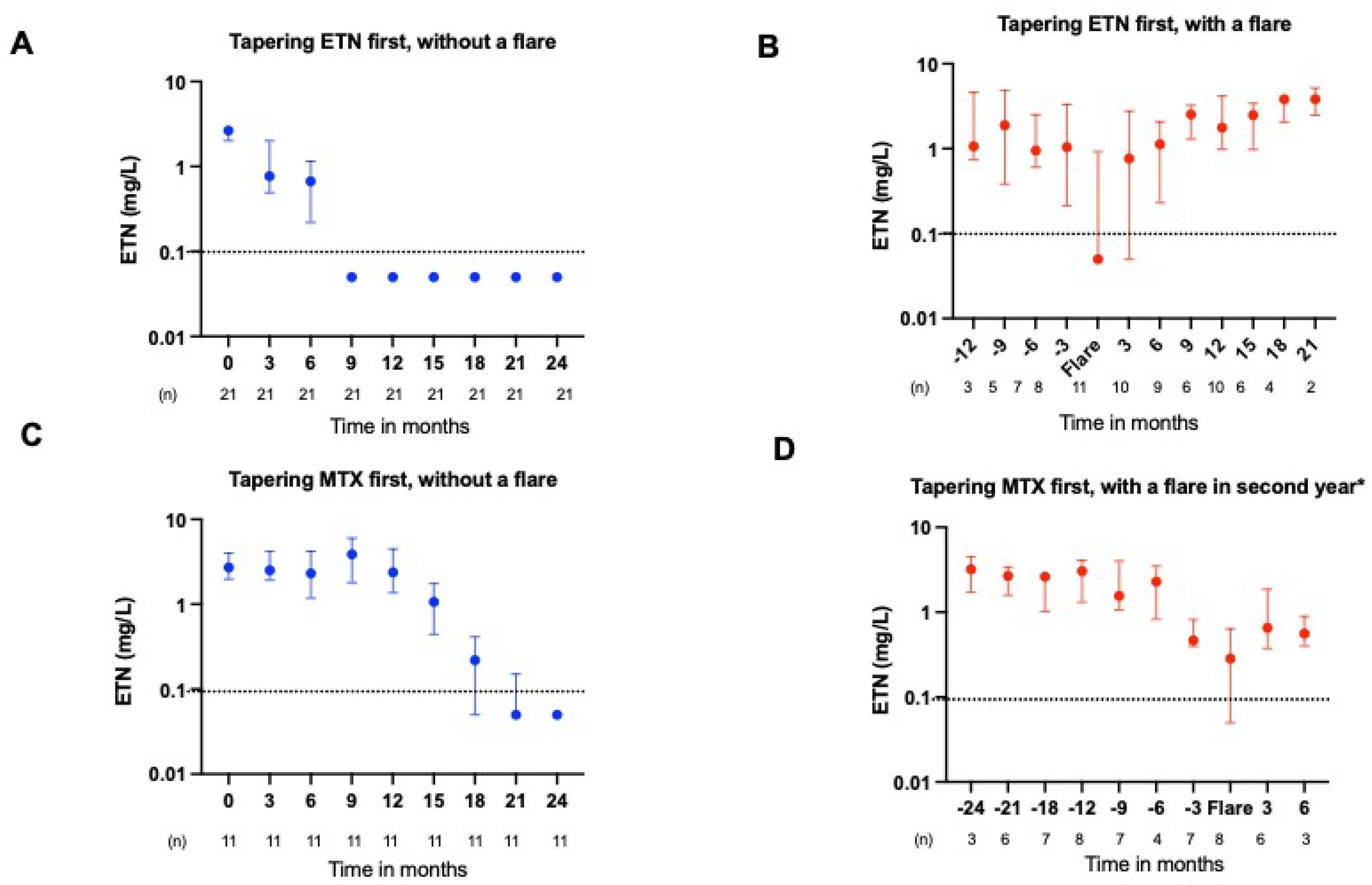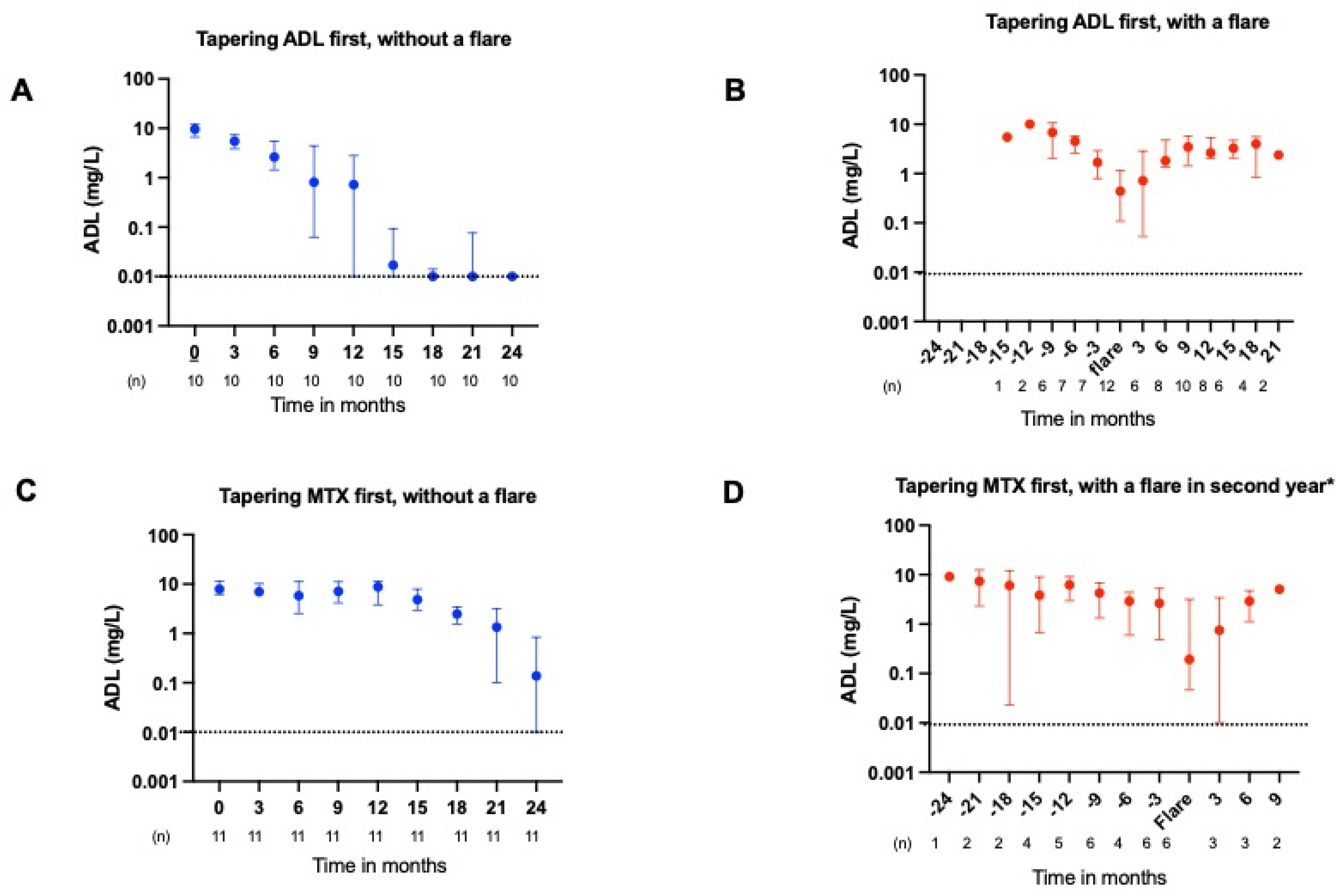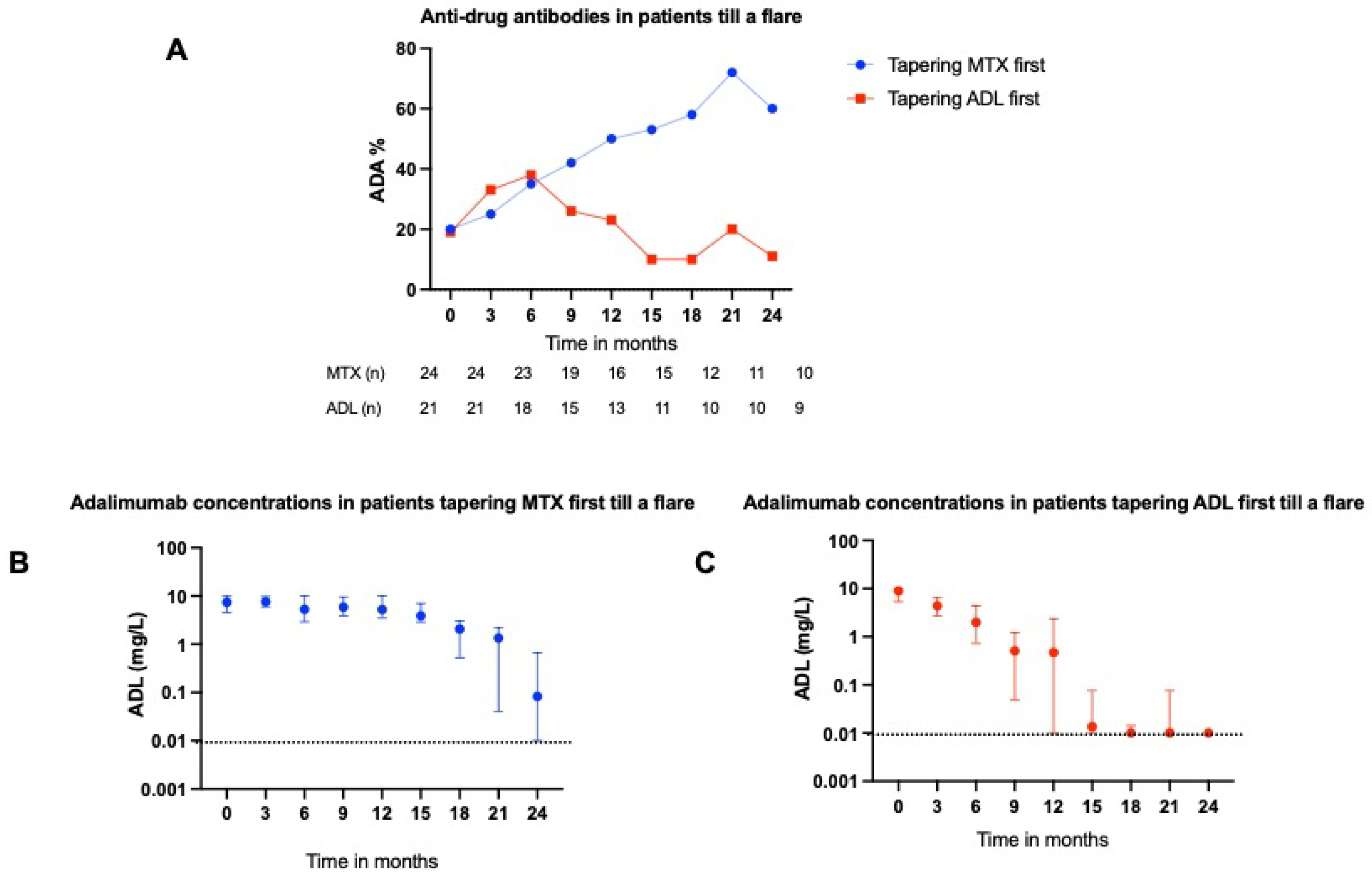 2.2. ADL and ETN Serum Concentrations During Tapering
