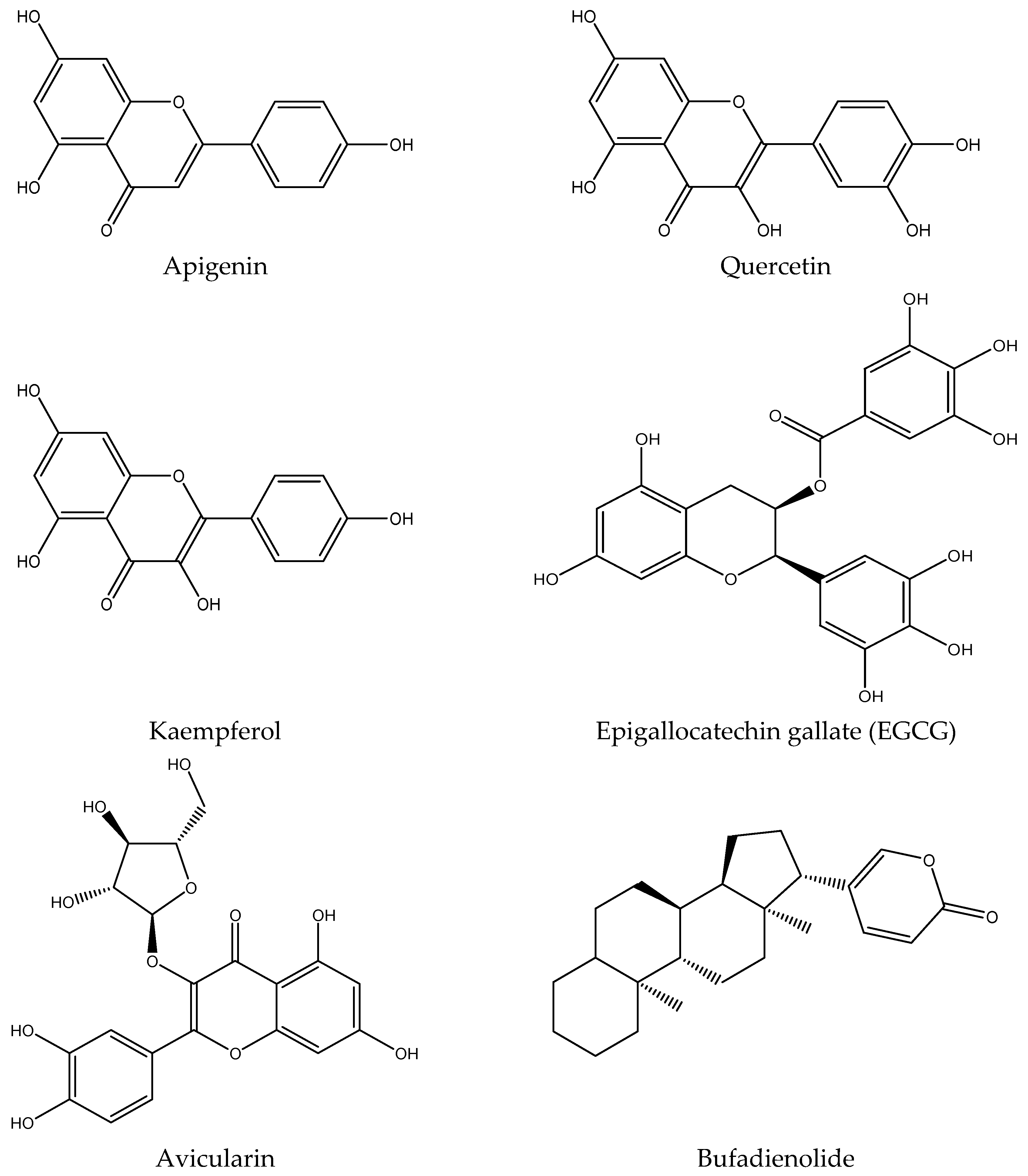 - Wang, Y.; Liu, M.; Chen, S.; Wu, Q. Avicularin inhibits cell proliferation and induces cell apoptosis in cutaneous squamous cell carcinoma. Exp. Ther. Med. 2019, 19, 1065–1071. [Google Scholar] [CrossRef]