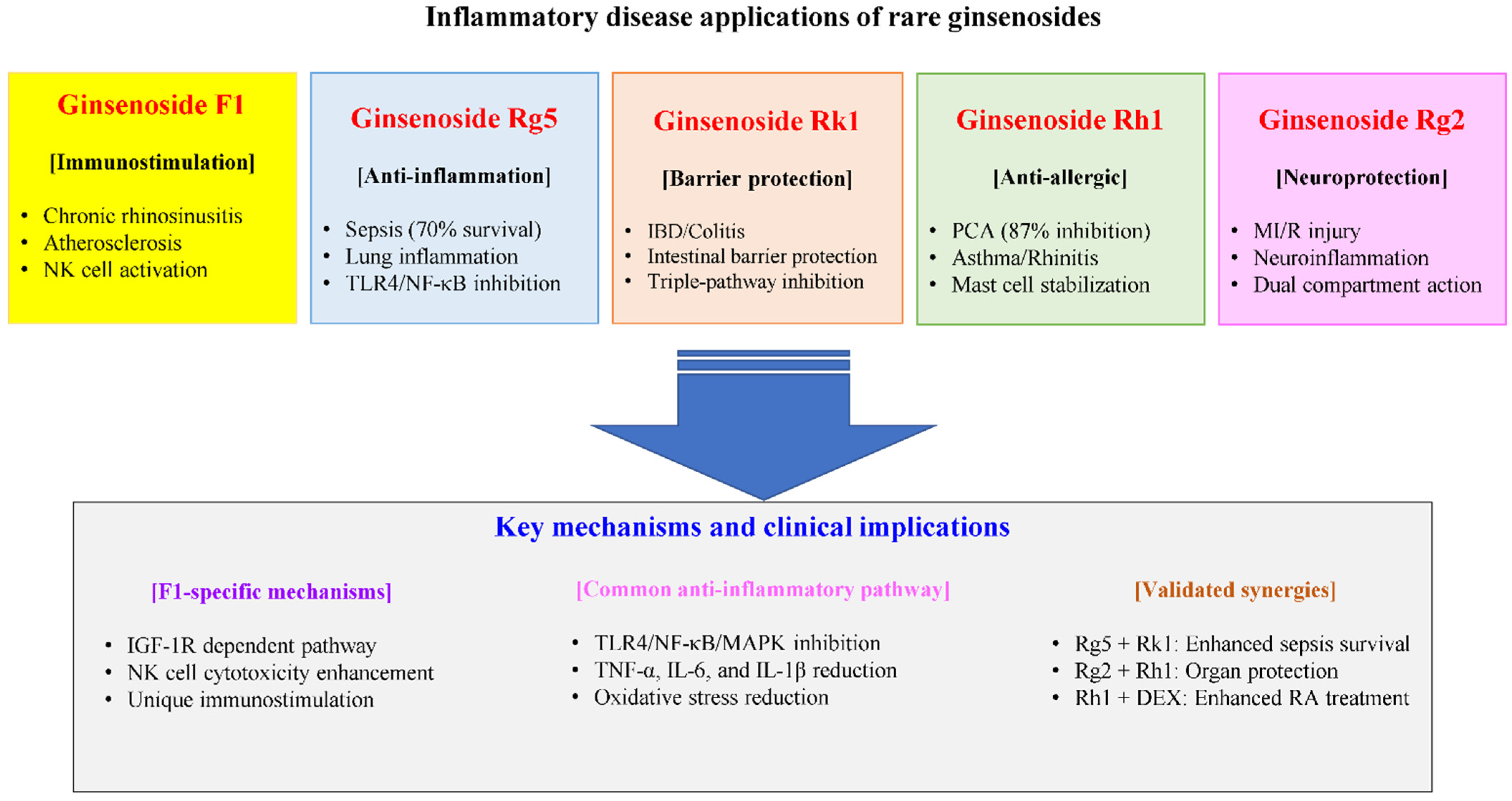 Immunomodulatory Activities of Emerging Rare Ginsenosides F1, Rg5, Rk1, Rh1, and Rg2: From Molecular Mechanisms to Therapeutic Applications