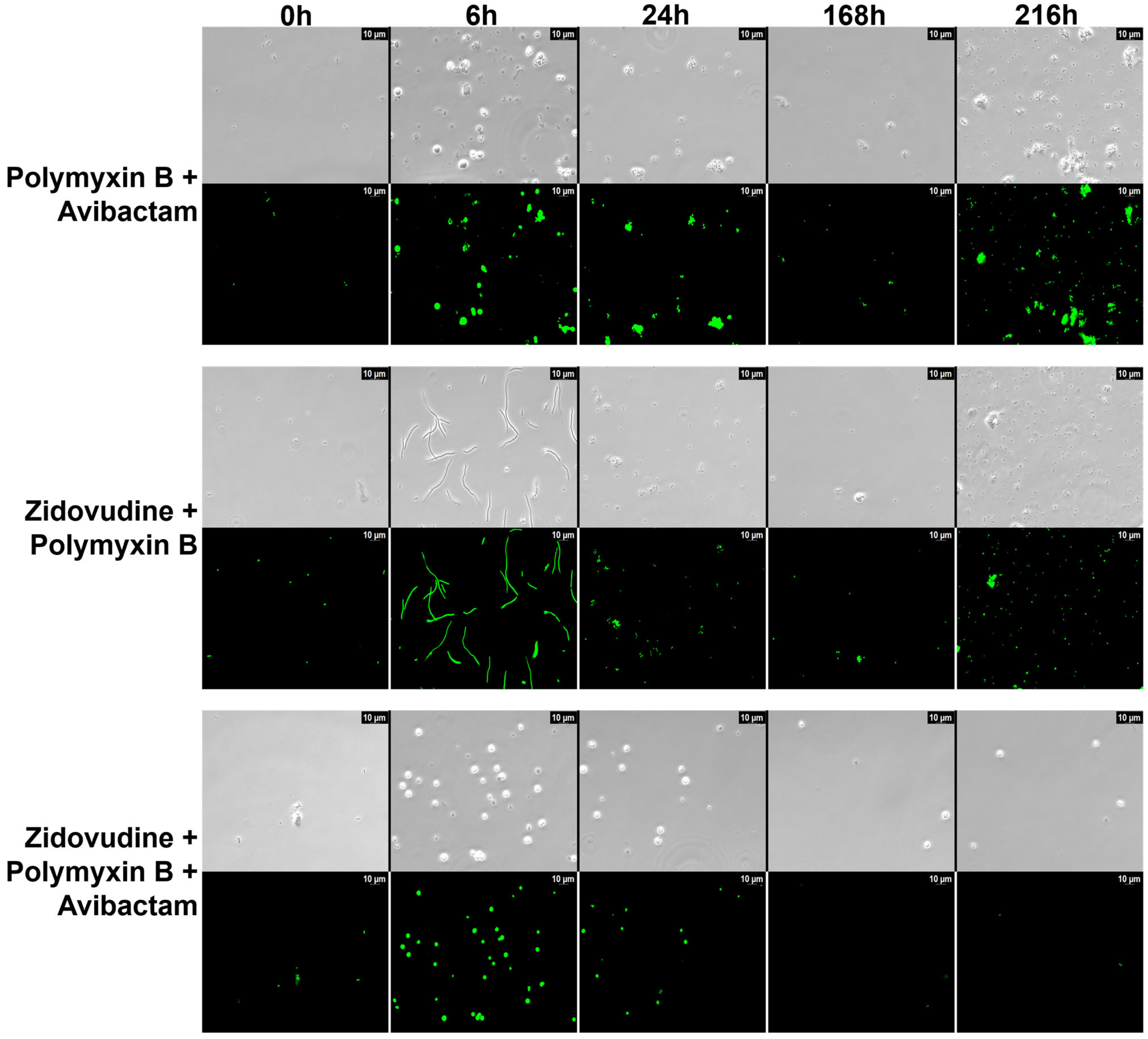 - Lin, Y.-W.; Rahim, N.A.; Zhao, J.; Han, M.-L.; Yu, H.H.; Wickremasinghe, H.; Chen, K.; Wang, J.; Paterson, D.L.; Zhu, Y.; et al. Novel Polymyxin Combination with the Antiretroviral Zidovudine Exerts Synergistic Killing against NDM-Producing Multidrug-Resistant Klebsiella pneumoniae. Antimicrob. Agents Chemother. 2019, 63, e02176-18. [Google Scholar] [CrossRef] [PubMed] [PubMed Central]