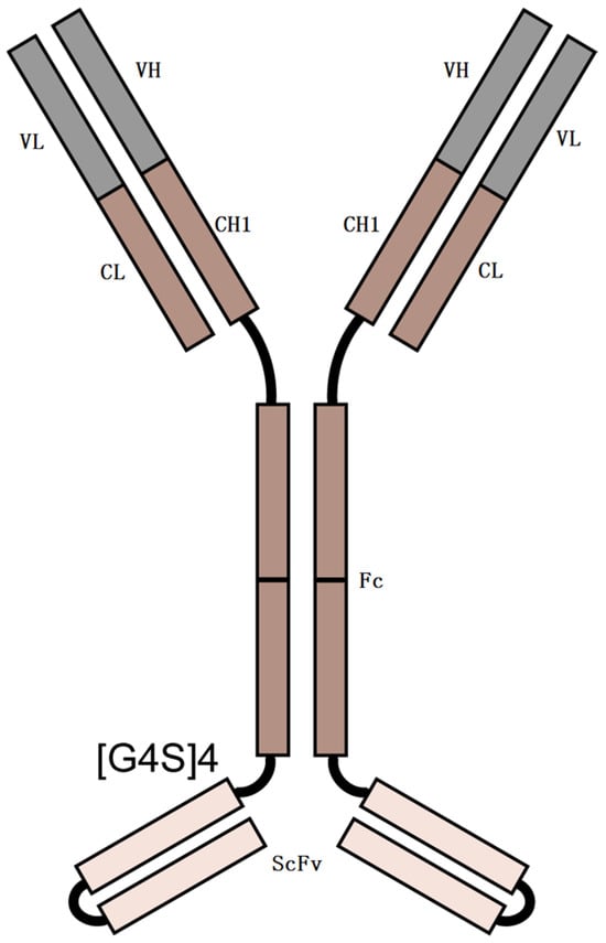 The use of protein biotherapeutic drugs has gained widespread interest in the treatment of various diseases. Antibodies are a major class of beneficial and effective drugs that have been developed as treatments for a variety of therapeutic areas. The substantial number of antibodies entering clinical studies and approval has been well-reported. Monoclonal antibodies (mAbs) commonly include the immunoglobulin G (IgG) 1, IgG2 and IgG4 subclasses [,,]. With the advancement of technology, bispecific antibodies (BsAbs) have emerged as a significant innovation in biopharmaceuticals that may have different heavy chains and light chains, and other IgG-based molecules in alternative formats, such as those with the addition and removal of the antigen-binding fragment (Fab) arm, have also been created to achieve advantageous properties, such as the ability to interact with multiple therapeutic targets. In cancer therapy, BsAbs can achieve high target specificity by simultaneously binding to one tumor-associated antigen and recruiting tumor-killing agents (e.g., T cells) via a second binding site [,,], thereby enhancing specificity, minimizing off-target toxicities, and synergistically modulating anti-tumor immunity and the tumor microenvironment. Compared with the combination of two monoclonal antibodies, BsAbs represent the physical integration of dual specificities, demonstrating superior binding efficacy, reducing the risk of drug resistance, and enabling unique biological functions such as bridging tumor cells and T cells to achieve precise cytotoxicity. Full-size antibodies consisting of several polypeptide chains, are typically synthesized in eukaryotic, mainly mammalian, cell lines (Chinese hamster ovary and human embryonic kidney cells 293). Such systems can provide correct folding, post-translational modifications, and glycosylation according similar to those in human cells.