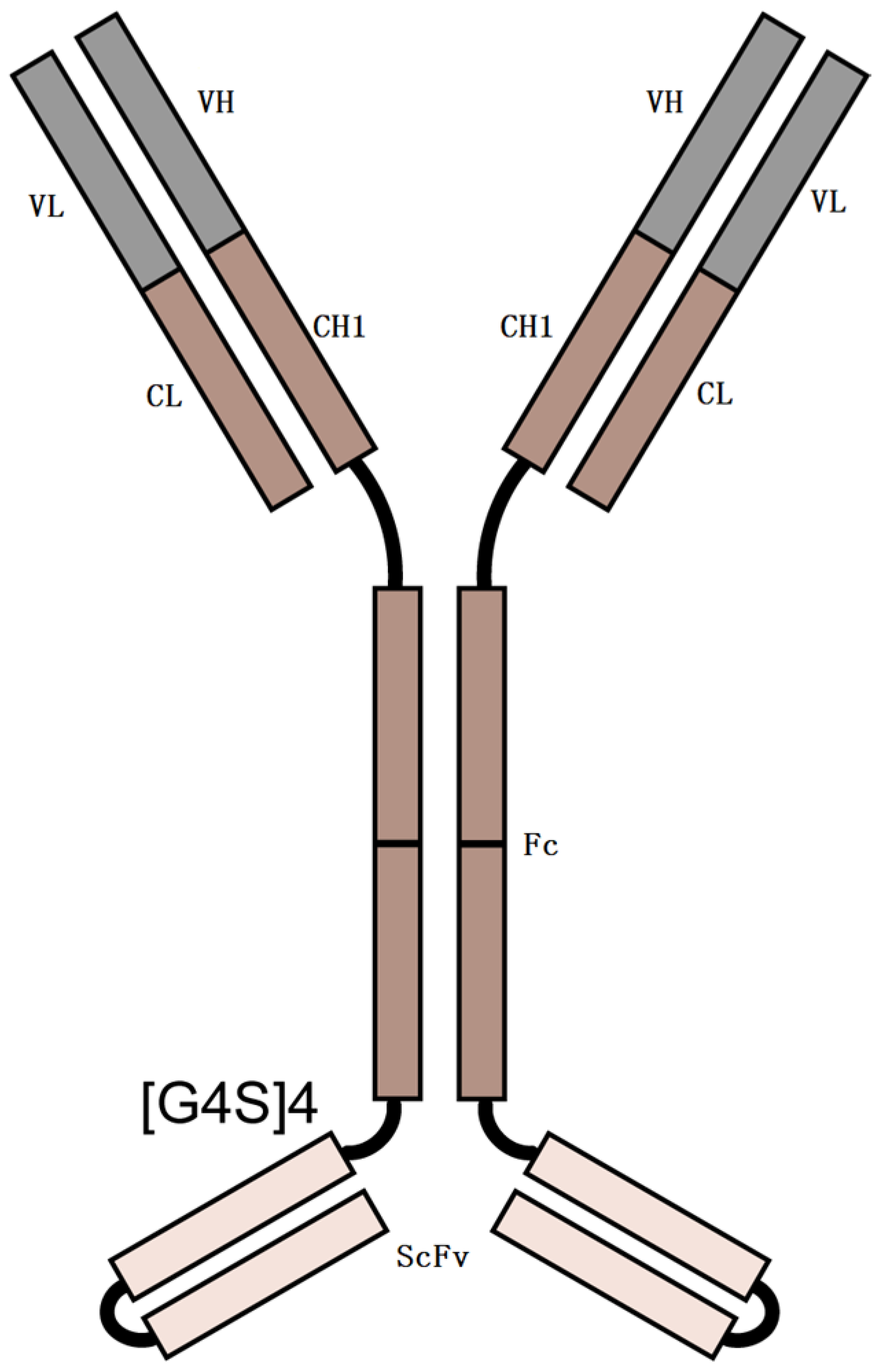 Figure 1. Schematic representation of BsAb. Linker = (G4S)4.