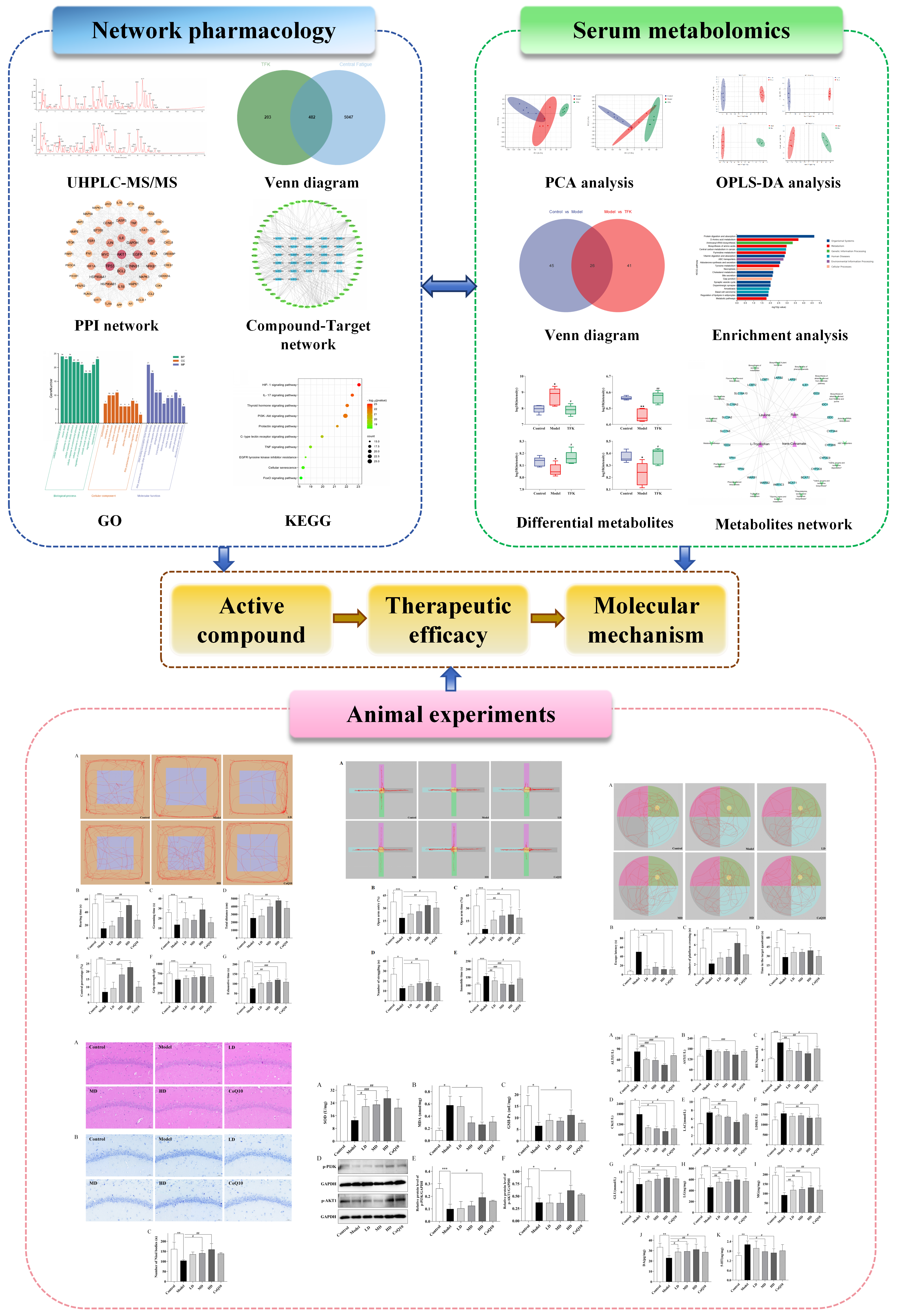 Zhang Y, Zhang Z, Yu Q, Shi Q, Lan B, Liu Y, Zhang W, Li F. The Effects and Mechanisms of Ti-Fu-Kang Decoction in Alleviating Central Fatigue: Insights from Network Pharmacology and Metabolomics. Pharmaceuticals. 2025; 18(10):1545. https://doi.org/10.3390/ph18101545