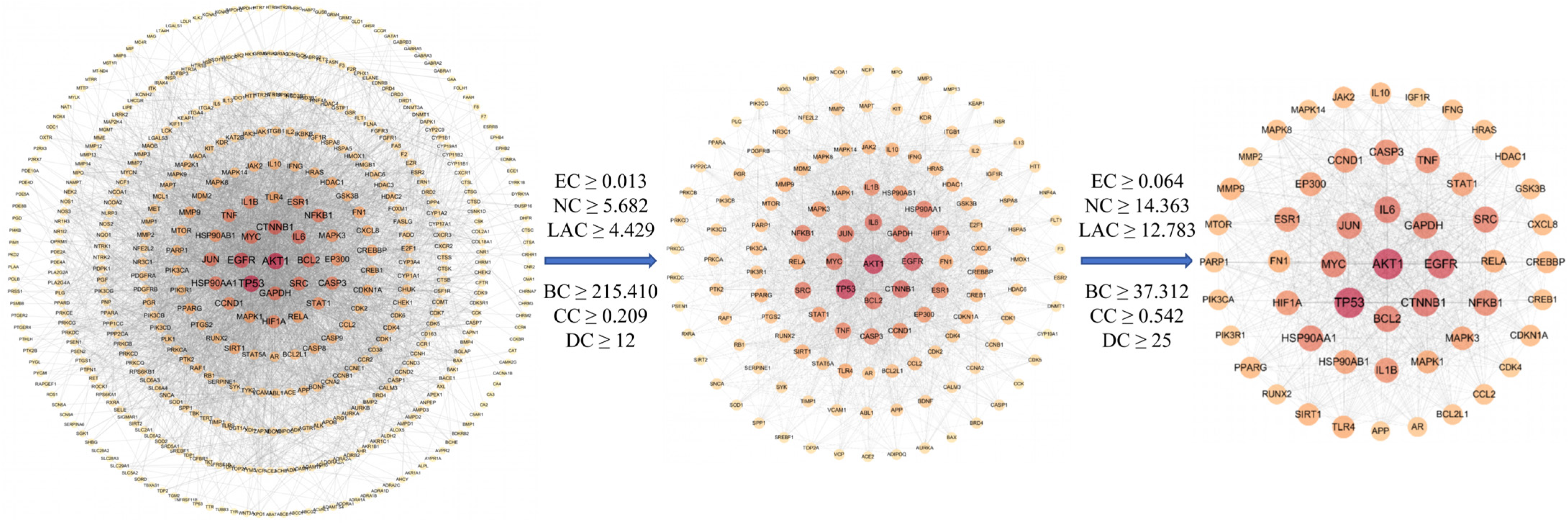 2.2.2. Protein–Protein Interaction (PPI) Network Construction and Topological Screening