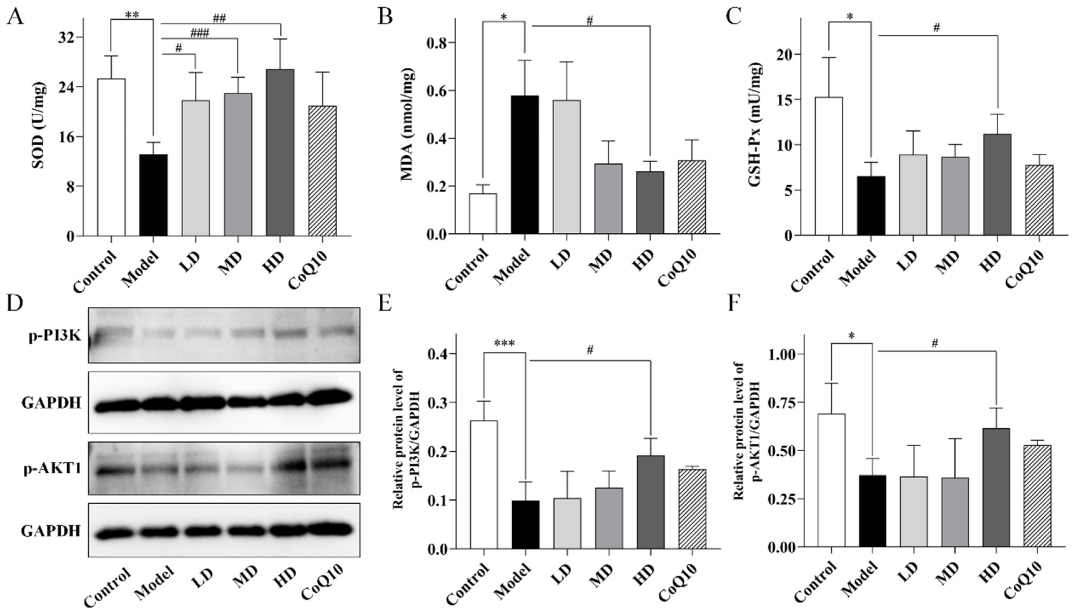 4.8. Measurement of SOD, MDA and GSH-Px