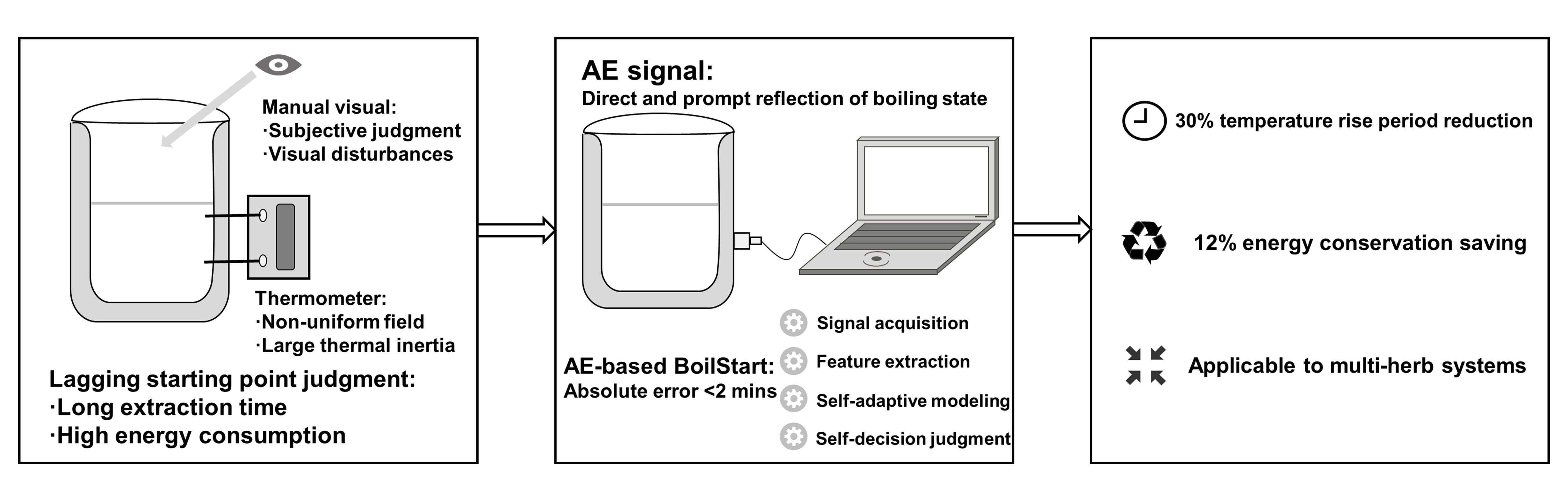 Energy Conservation and Production Efficiency Enhancement in Herbal Medicine Extraction: Self-Adaptive Decision-Making Boiling Judgment via Acoustic Emission Technology