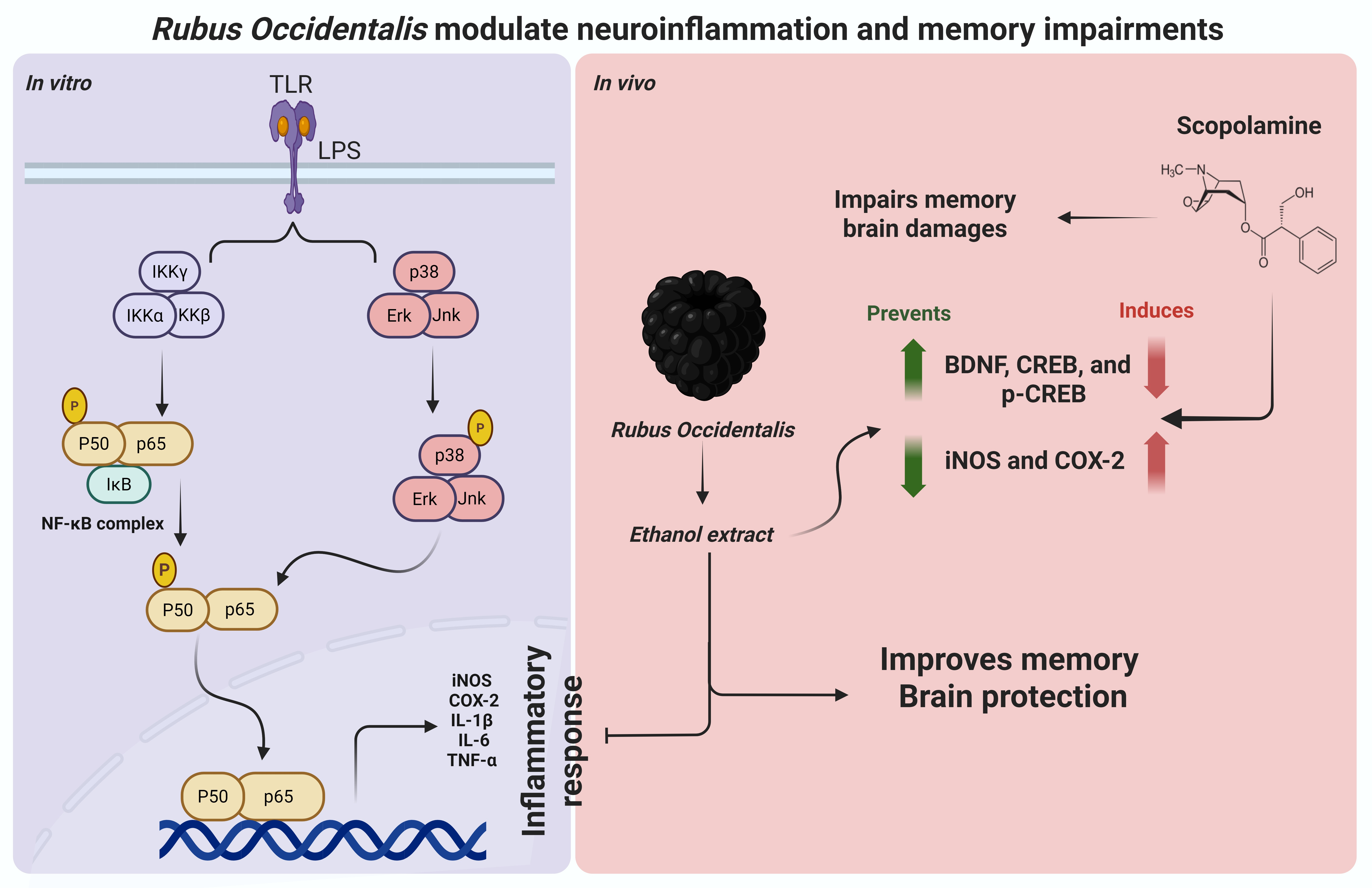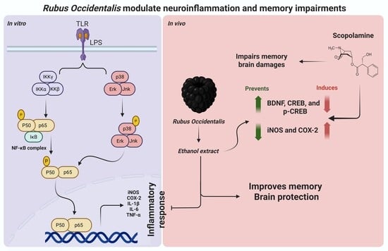 Chicago/Turabian StyleKim, Ga-Won, Yon-Suk Kim, Tohmina Afroze Bondhon, Rengasamy Balakrishnan, Jun-Hyuk Han, Ji-Wung Kwon, Woo-Jung Kim, and Dong-Kug Choi. 2025. "Rubus occidentalis Ethanol Extract Attenuates Neuroinflammation and Cognitive Impairment in Lipopolysaccharide-Stimulated Microglia and Scopolamine-Induced Amnesic Mice" Pharmaceuticals 18, no. 10: 1557. https://doi.org/10.3390/ph18101557