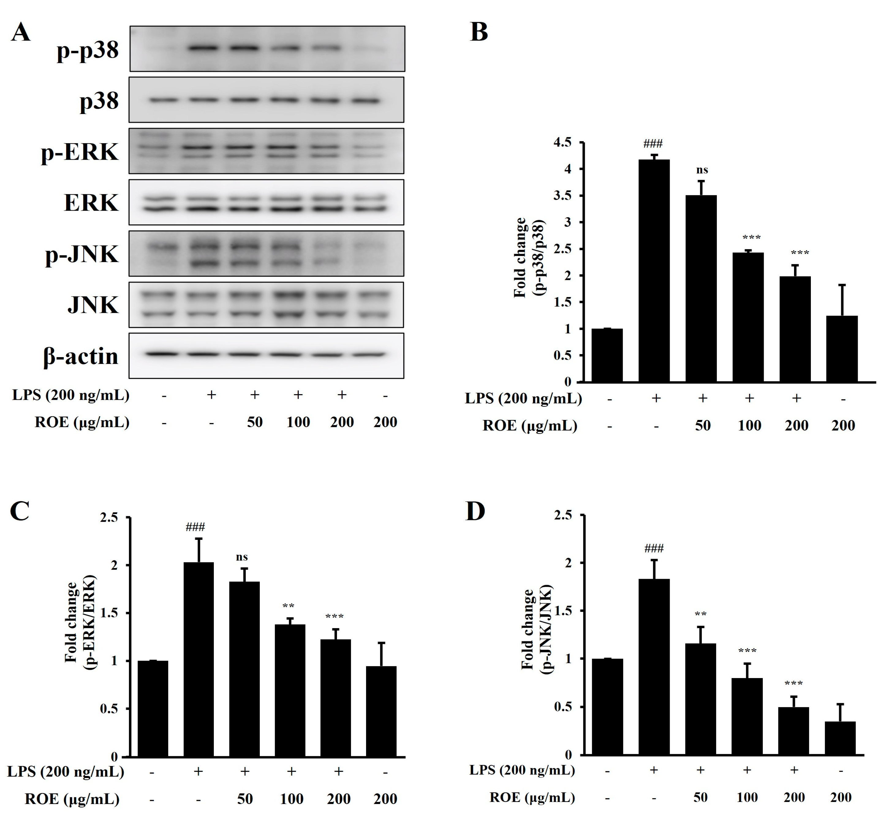 2.4. ROE Inhibited the Phosphorylation of MAPK Signaling in LPS-Stimulated BV-2 Microglia Cells