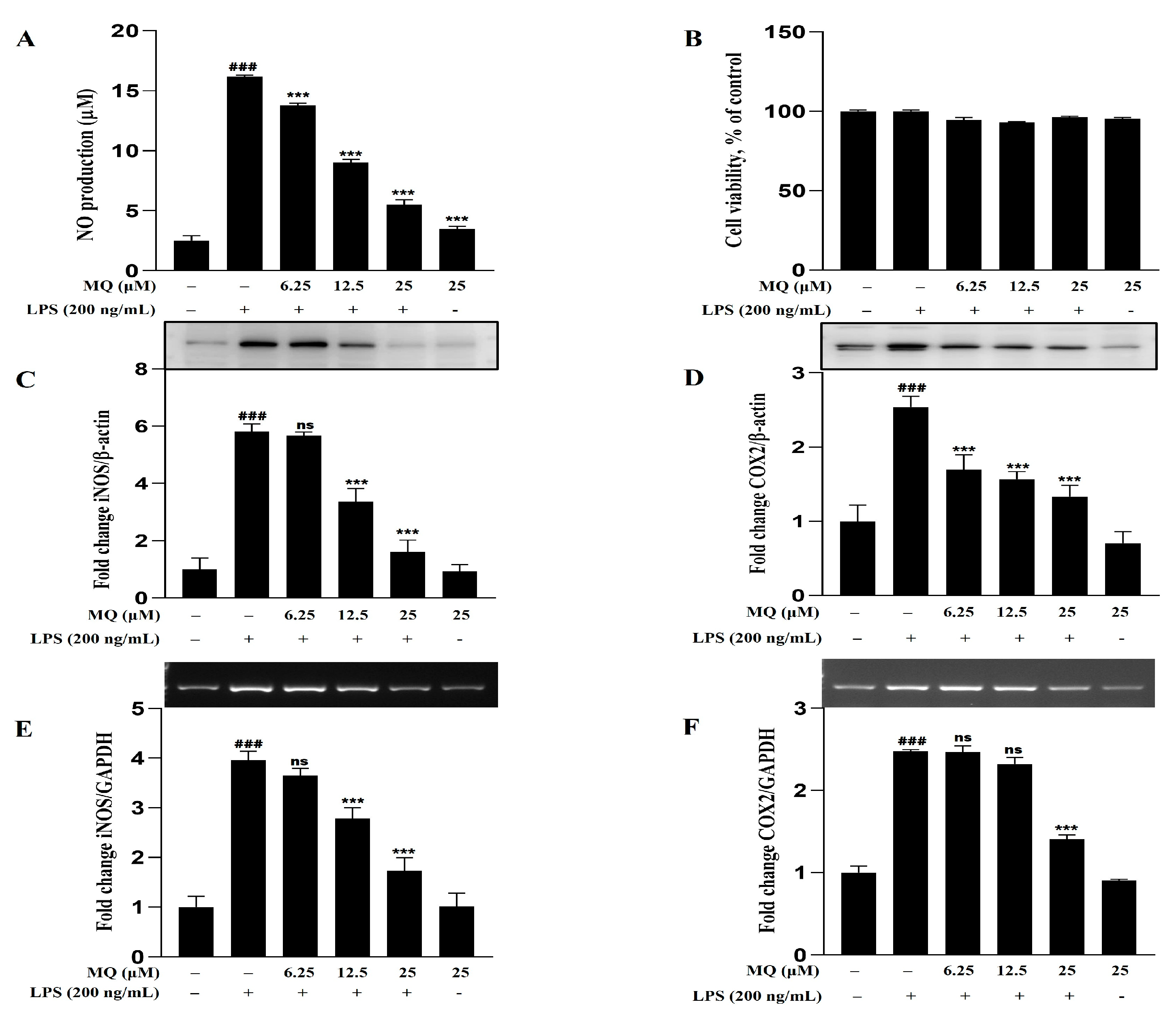 2.9. Anti-Inflammatory Effect of MQ in LPS-Stimulated BV-2 Microglia Cells