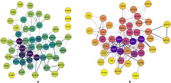 3.7.4. Protein–Protein Interaction (PPI) Network Construction