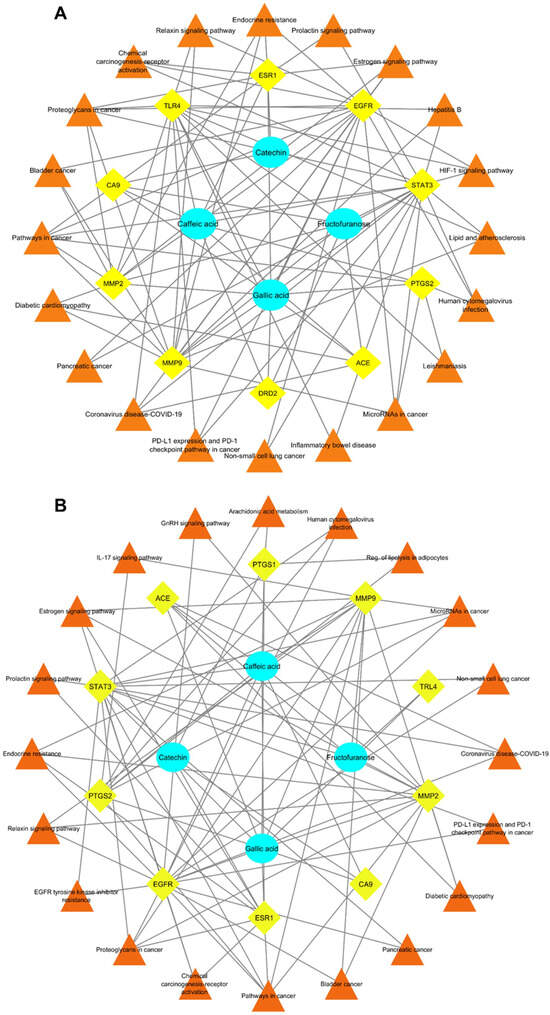 3.7.6. Compound–Target–Pathway Network Construction