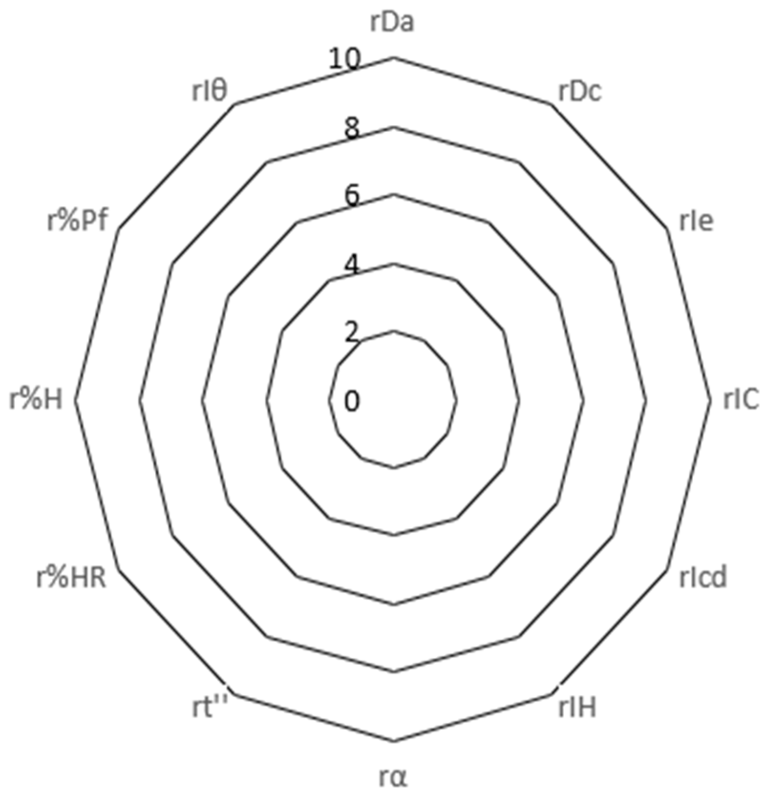After establishing the parameter values, they were mathematically transformed into r parameters using conversion factors applied to the original values to obtain r parameters with values between 0 and 10 (