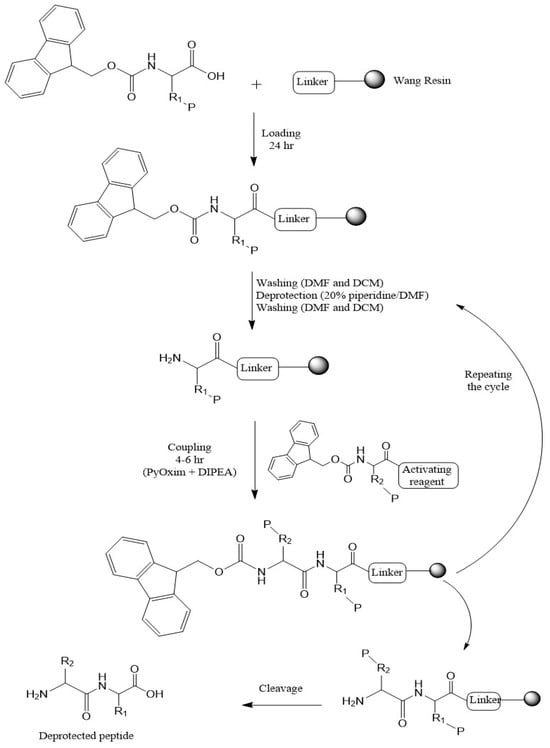 - Merrifield, R.B. Solid Phase Peptide Synthesis. I. The Synthesis of a Tetrapeptide. J. Am. Chem. Soc. 1963, 85, 2149–2154. [Google Scholar] [CrossRef]