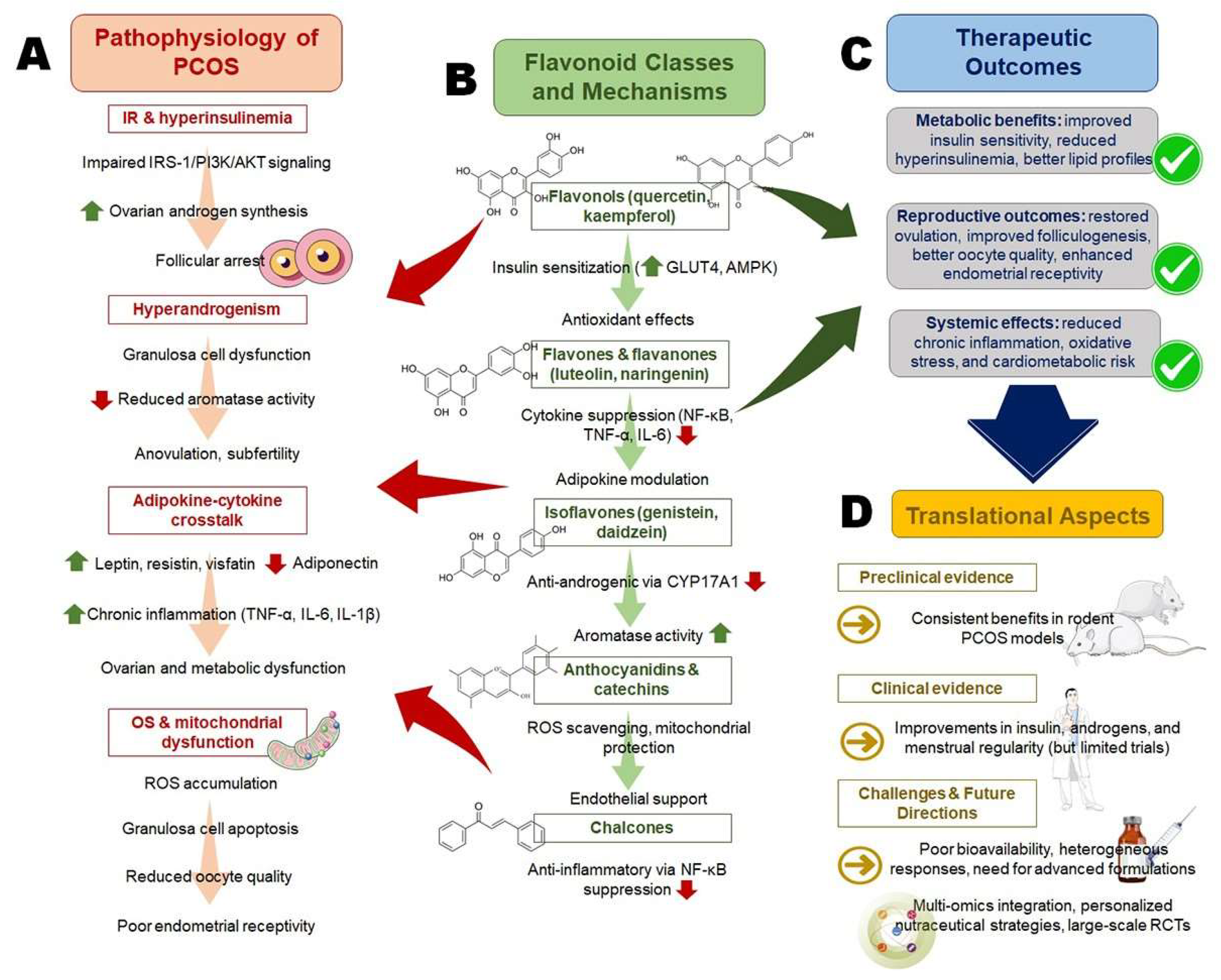 Chicago/Turabian StyleDutta, Sulagna, Pallav Sengupta, Sowmya Rao, Ghada Elsayed Elgarawany, Antony Vincent Samrot, Israel Maldonado Rosas, and Shubhadeep Roychoudhury. 2025. "Targeting Polycystic Ovary Syndrome (PCOS) Pathophysiology with Flavonoids: From Adipokine–Cytokine Crosstalk to Insulin Resistance and Reproductive Dysfunctions" Pharmaceuticals 18, no. 10: 1575. https://doi.org/10.3390/ph18101575
