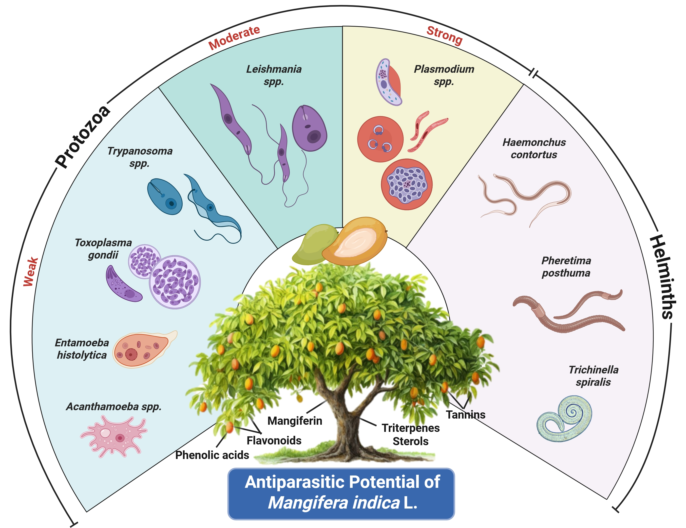 Mendonça D, Tan Y-Z, Lor Y-X, Ng Y-J, Siyadatpadah A, Lim C-L, Norouzi R, Pandey R, Lee W-C, Bodade R, et al. A Review on Phytochemistry, Ethnopharmacology, and Antiparasitic Potential of Mangifera indica L. Pharmaceuticals. 2025; 18(10):1576. https://doi.org/10.3390/ph18101576