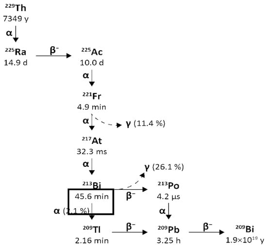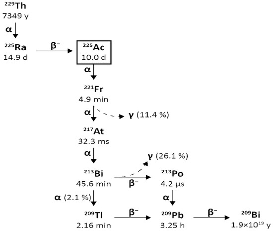 Figure 3 reports a schematic representation of the decay chain of Thorium-229 to Actinium-225 and Bismuth-213.