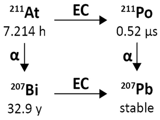 - Robinson, M.K.; Shaller, C.; Garmestani, K.; Plascjak, P.S.; Hodge, K.M.; Yuan, Q.-A.; Marks, J.D.; Waldmann, T.A.; Brechbiel, M.W.; Adams, G.P. Effective Treatment of Established Human Breast Tumour Xenografts in Immunodeficient Mice with a Single Dose of the Alpha-Emitting Radioisotope Astatine-211 Conjugated to Anti-HER2/Neu Diabodies. Clin. Cancer Res. Off. J. Am. Assoc. Cancer Res. 2008, 14, 875–882. [Google Scholar] [CrossRef] [PubMed]