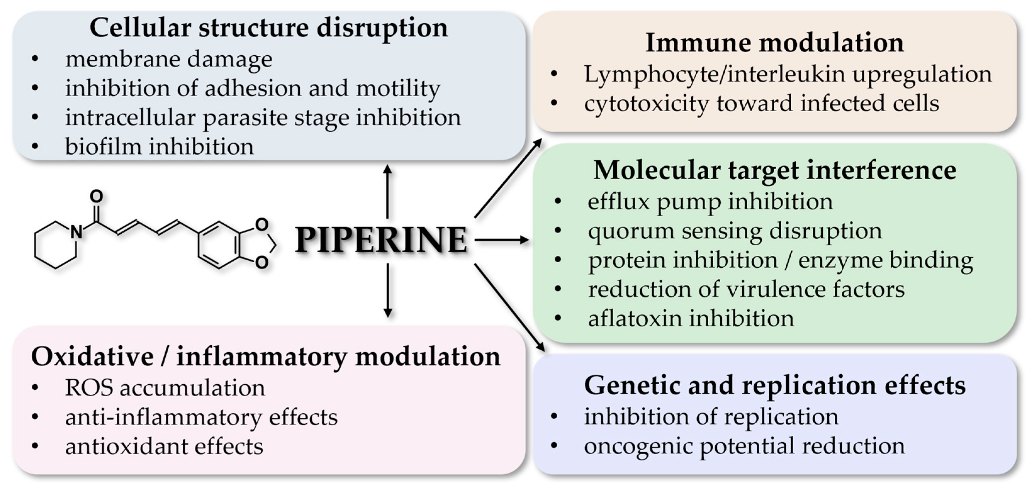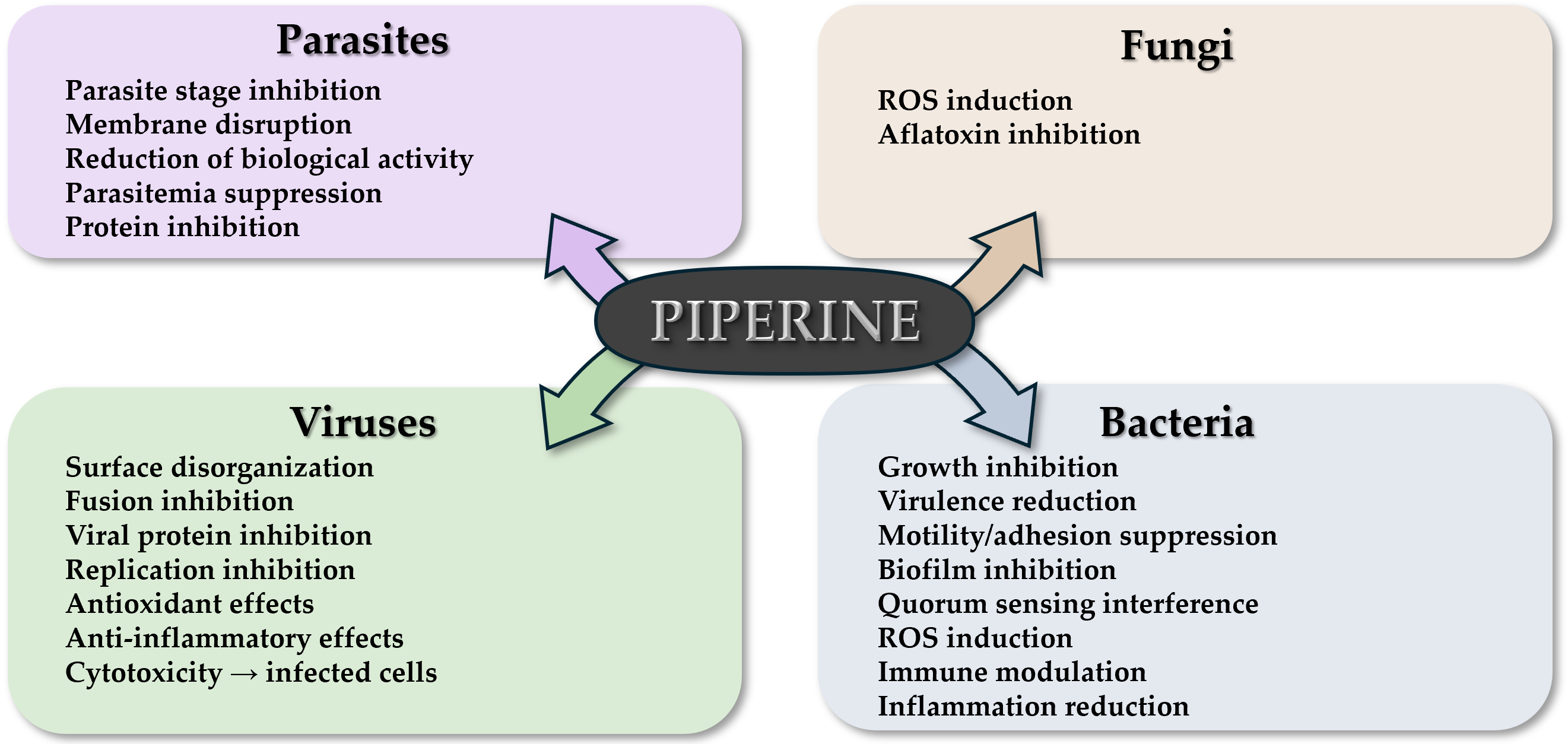 6. Current Knowledge, Challenges, and Future Perspectives on the Antimicrobial and Antiviral Actions of Piperine