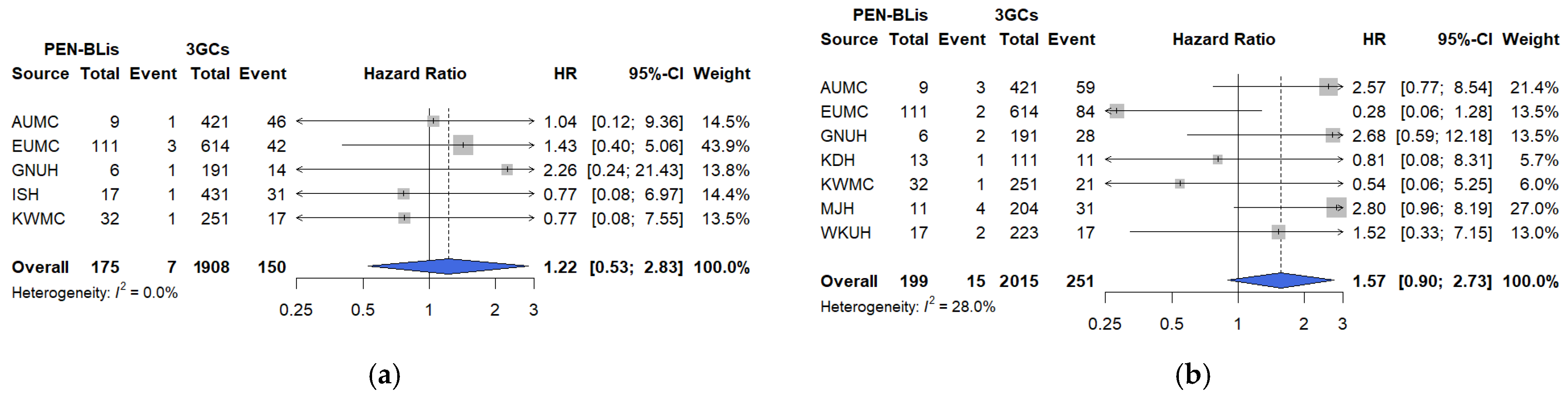 Supplementary Tables S23–S25 provides a list of agents within each class. The 3GCs served as the reference group for comparison with the other two antibiotic classes in all analyses.