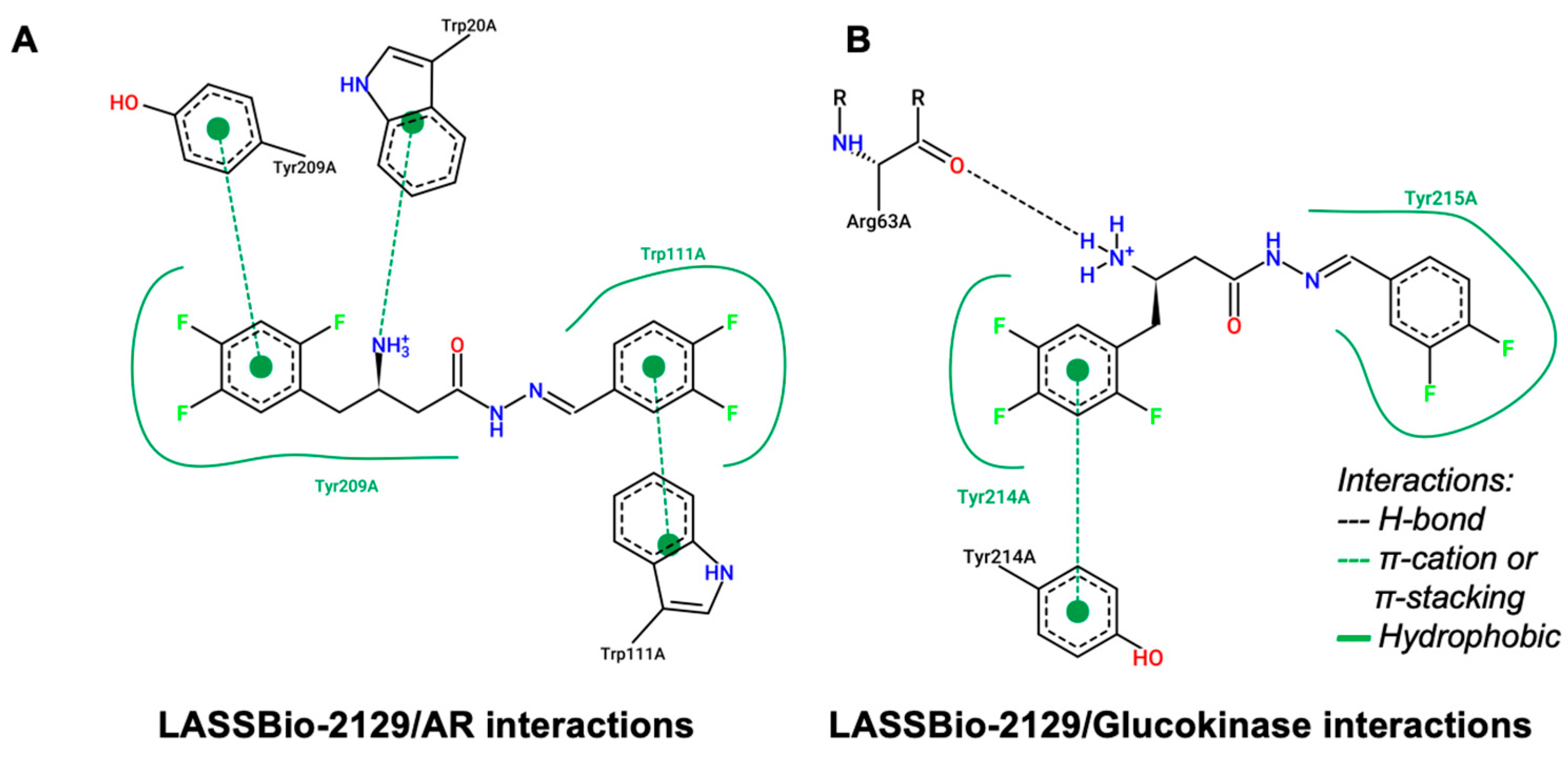 Aldose Reductase | LASSBio-2123 | 1.362 | Hydrophobic | Trp20(3.82), Trp20 (3.09), Val47 (3.31), Tyr48 (3.79), Tyr209 (3.83), Tyr209 (3.83), Ile260 (3.71) |