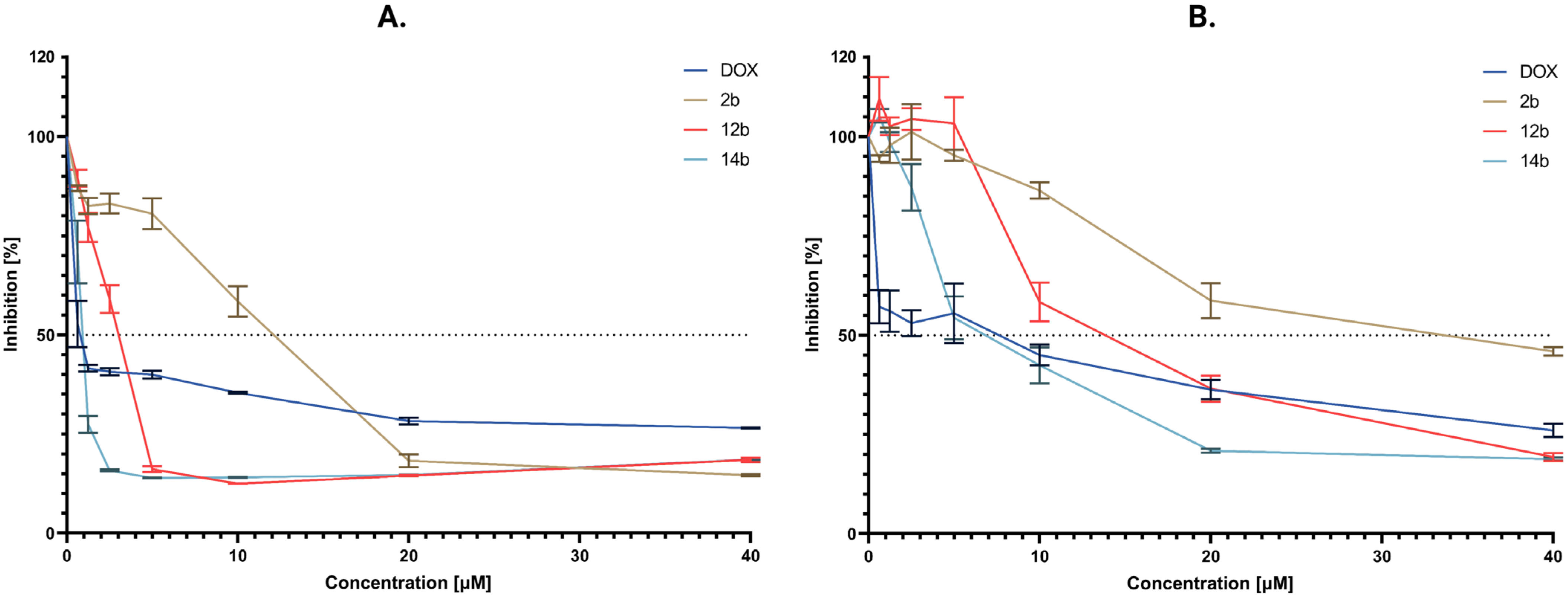 | Comp./Cell Lines | 1b | 2b | 3b | 4b | 5b | 6b | 7b | 8b | 9b | 10b | 11b | 12b | 13b | 14b | 15b | DOX |