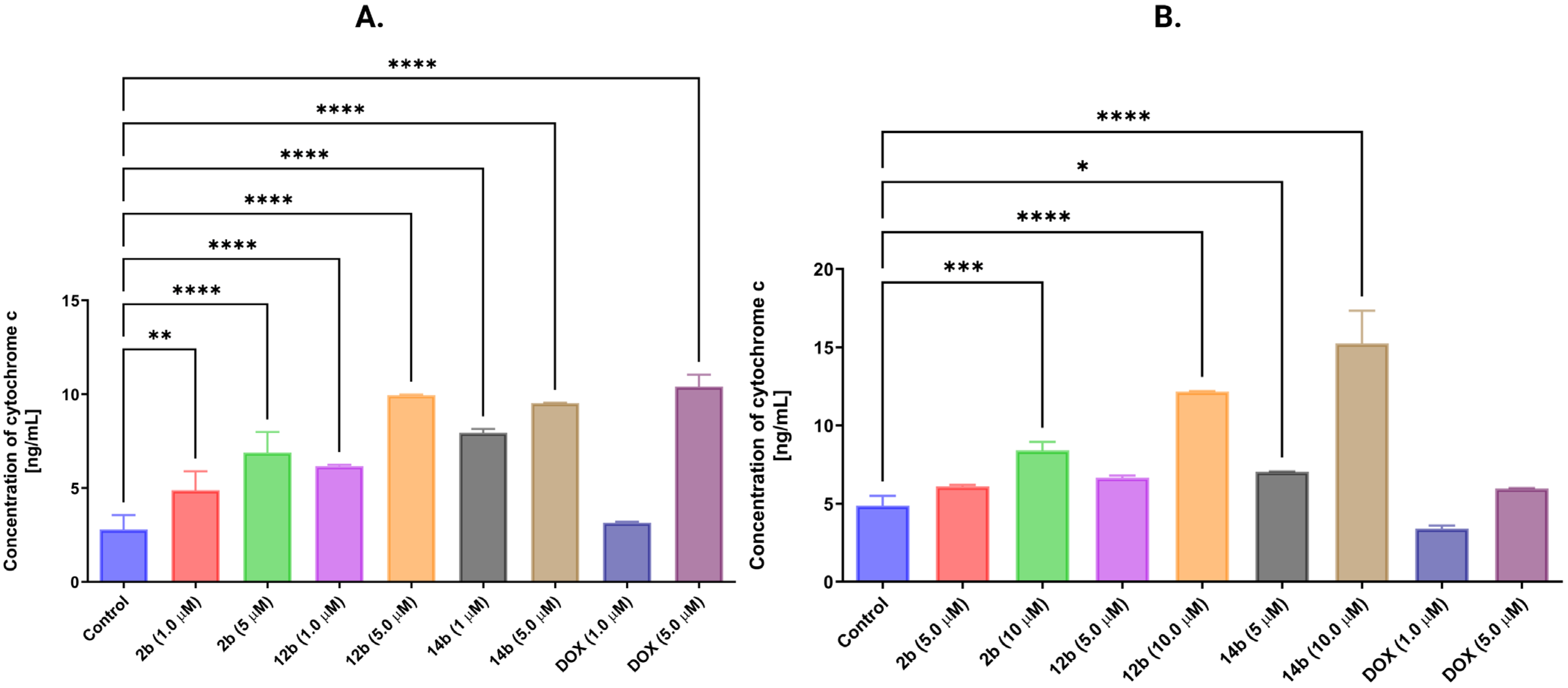 4.9. Determination of Cytochrome C and Caspase-3 Concentrations