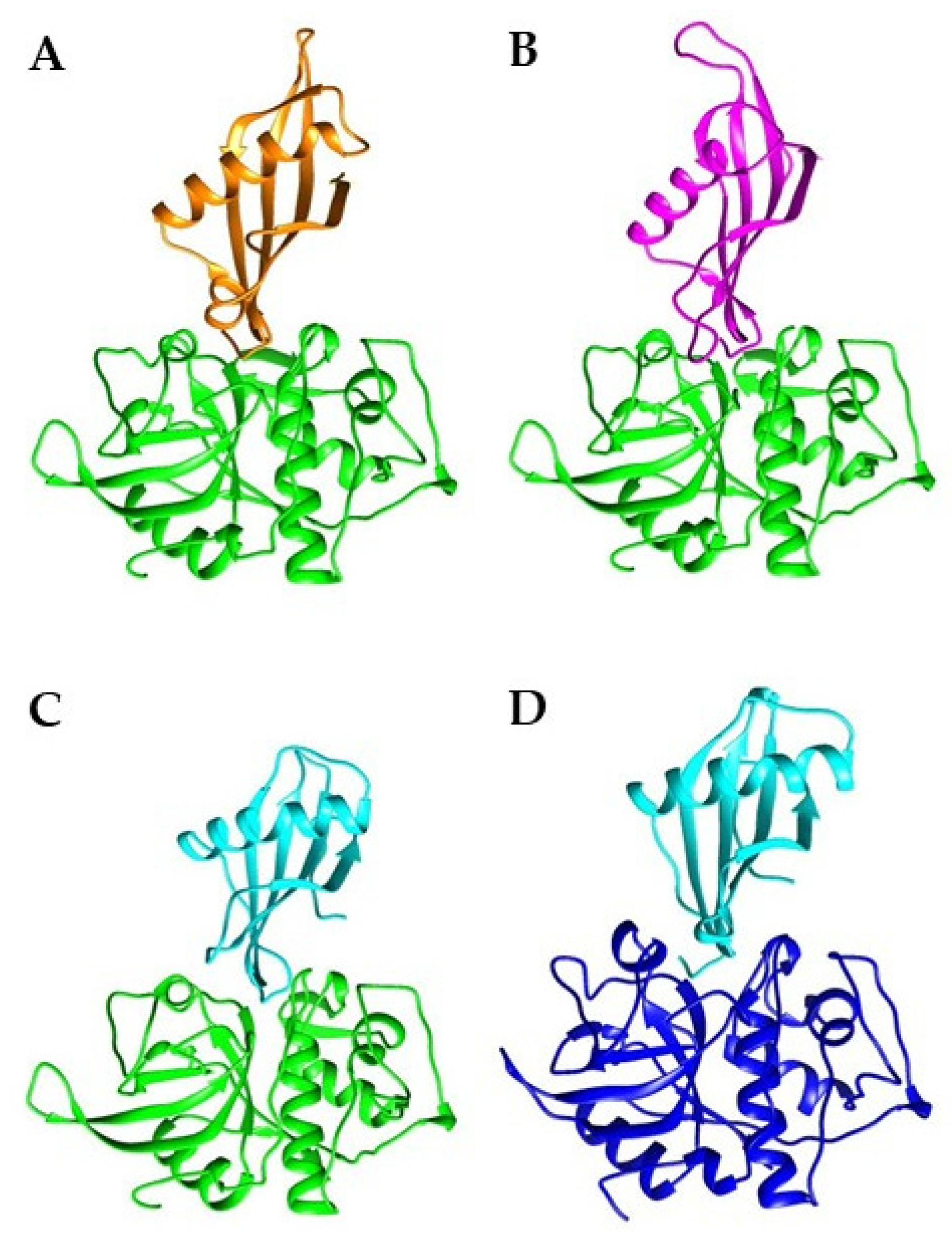 - Goddard, T.D.; Huang, C.C.; Meng, E.C.; Pettersen, E.F.; Couch, G.S.; Morris, J.H.; Ferrin, T.E. UCSF ChimeraX: Meeting Modern Challenges in Visualization and Analysis: UCSF ChimeraX Visualization System. Protein Sci. 2018, 27, 14–25. [Google Scholar] [CrossRef] [PubMed]