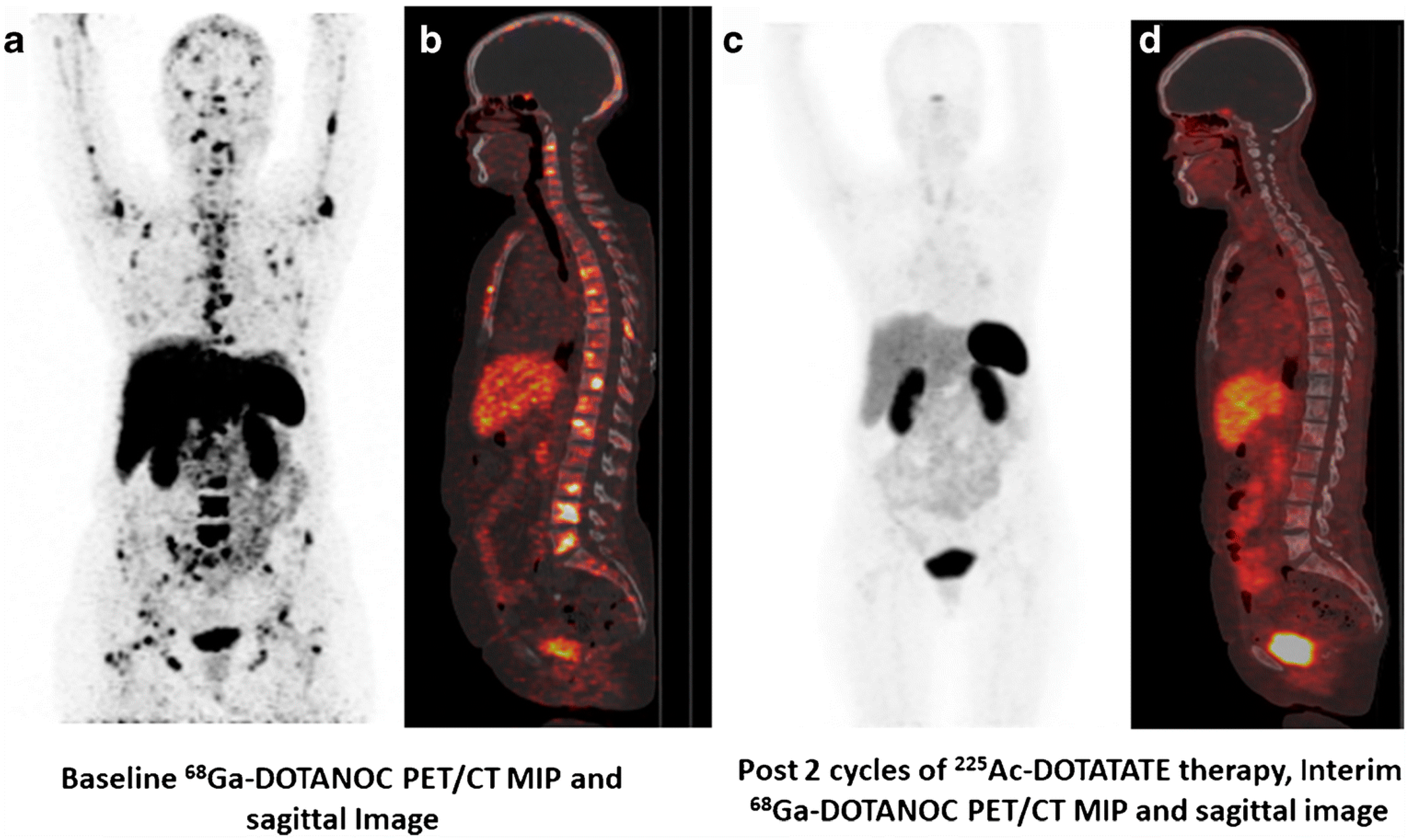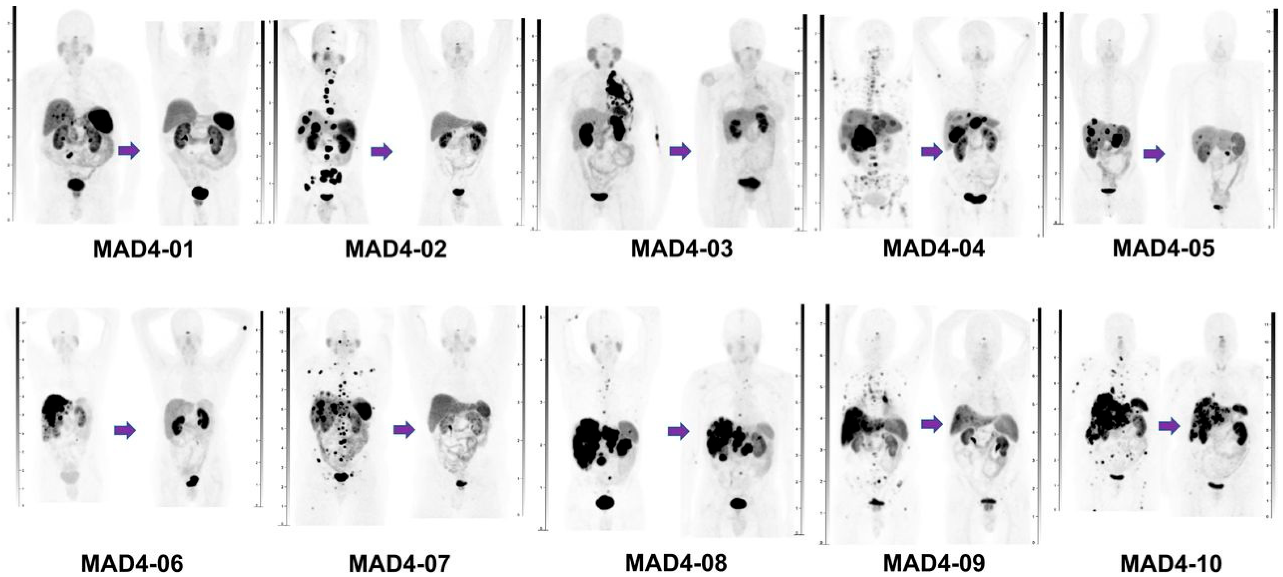 - Yang, H.; Zhang, Y.; Li, H.; Zhang, Y.; Feng, Y.; Yang, X.; Chen, Y. Efficacy and Safety of 225Ac-DOTATATE in the Treatment of Neuroendocrine Neoplasms with High SSTR Expression. Clin. Nucl. Med. 2024, 49, 505–512. [Google Scholar] [CrossRef]