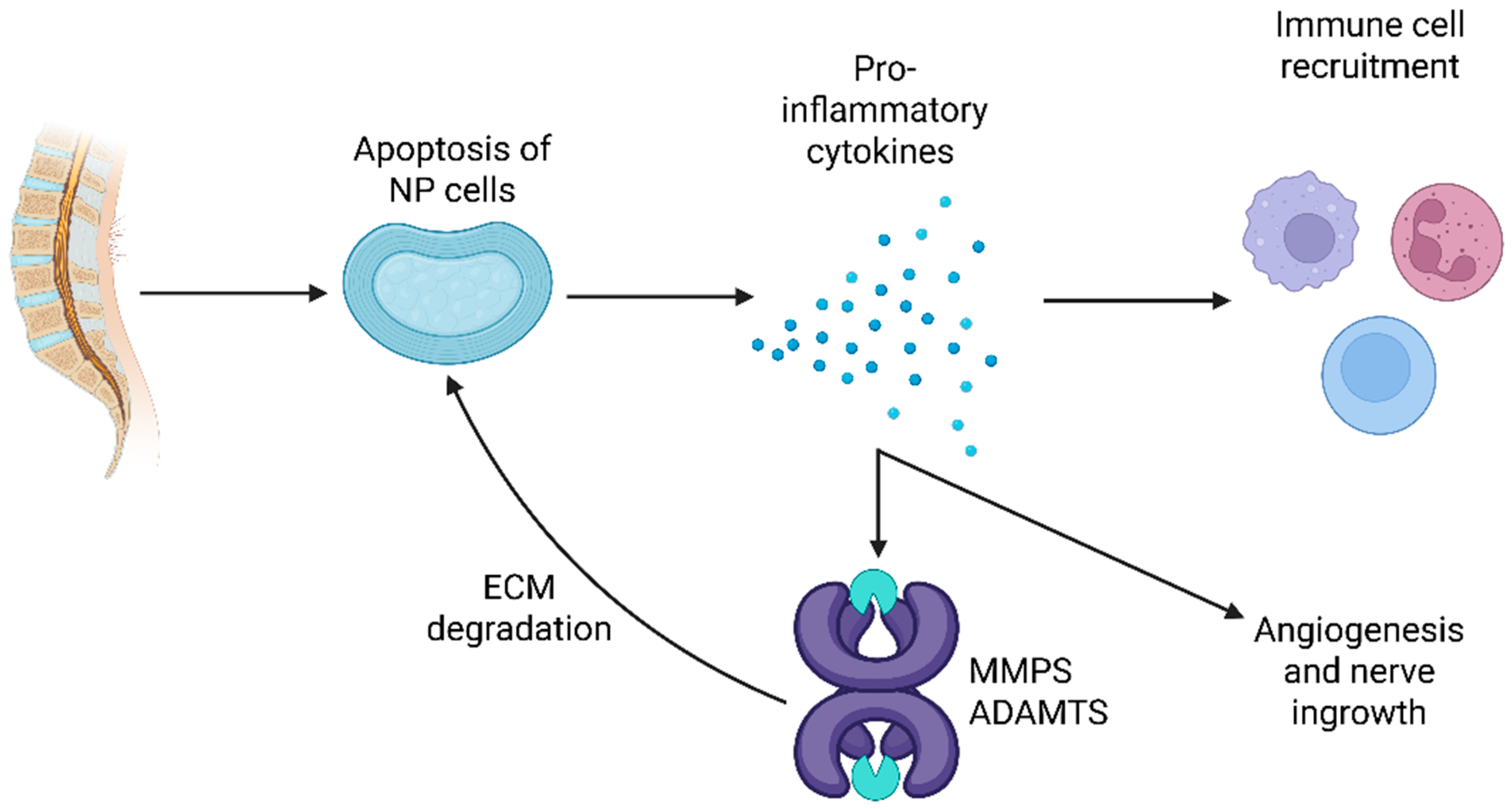 - Xu, H.; Li, J.; Fei, Q.; Jiang, L. Contribution of immune cells to intervertebral disc degeneration and the potential of immunotherapy. Connect. Tissue Res. 2023, 64, 413–427. [Google Scholar] [CrossRef]