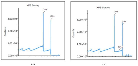 XPS analysis of (a) At-Cu LNCs and (b) FA- At-Cu LNCs, displaying the nitrogen peak in the latter.