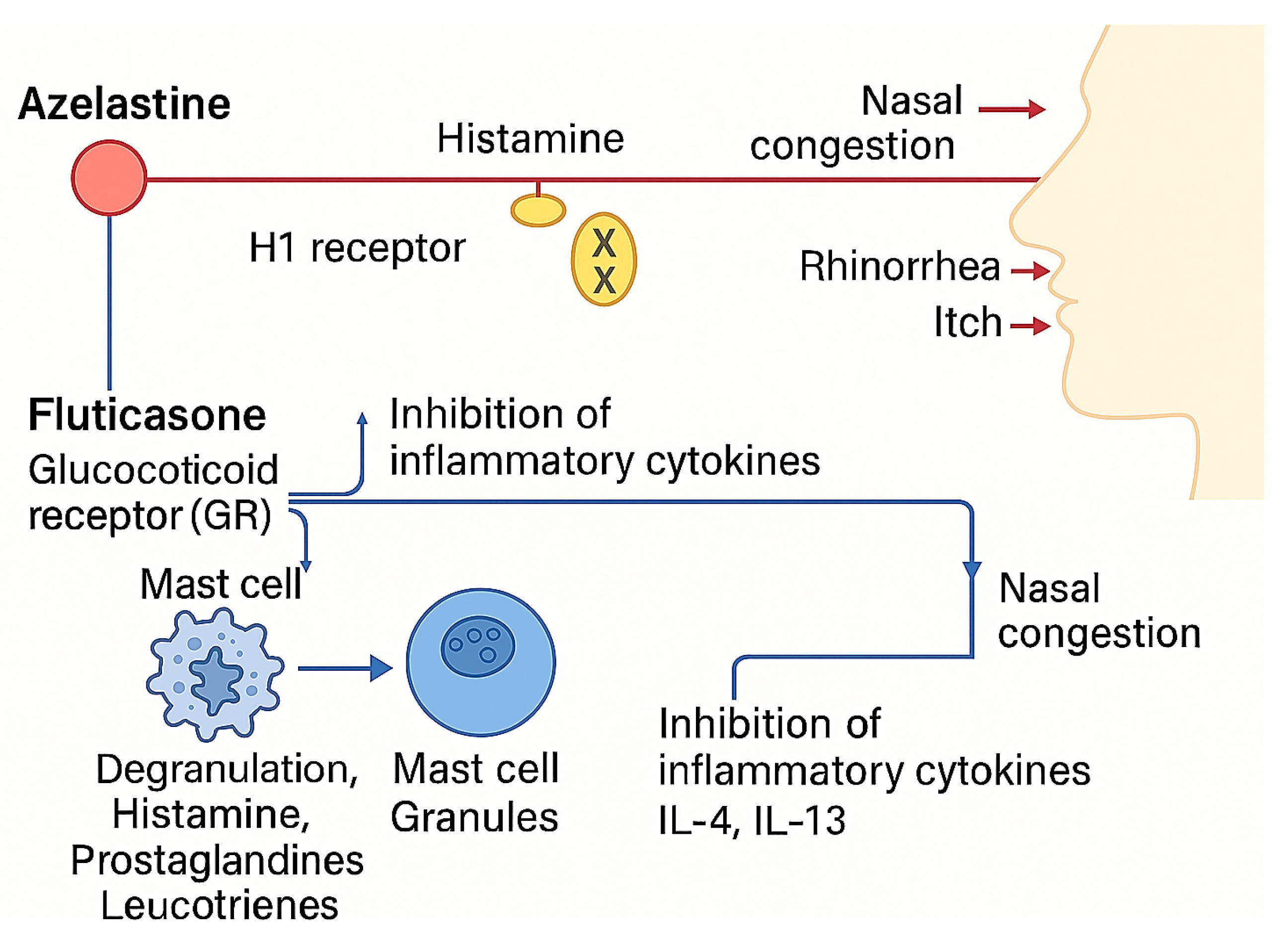 Indolfi C, Klain A, Dinardo G, Grella C, Di Filippo P, Fatica I, Napolano V, Decimo F, Miraglia del Giudice M. Azelastine–Fluticasone Combination Therapy in Allergic Rhinitis: Current Evidence and Clinical Implications in Children and Adults. Pharmaceuticals. 2025; 18(11):1624. https://doi.org/10.3390/ph18111624