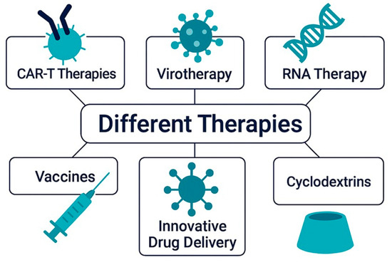 GB remains one of the most aggressive and therapeutically challenging tumors in neuro-oncology. Its highly infiltrative nature, rapid progression, and resistance to conventional therapies contribute to poor prognosis and high recurrence rates. Furthermore, its difficulty crossing the BBTB significantly limits the effectiveness of conventional treatments. The standard of care for GB is based on a multimodal approach that integrates surgical resection [73], radiotherapy [74], and pharmacotherapy [75]. However, due to the tumor’s complexity and its ability to evade therapeutic interventions, additional strategies have emerged to improve clinical outcomes and patient quality of life.