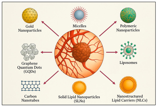 Glioblastoma (GB) is widely recognized as one of the most aggressive and therapeutically challenging malignancies of the central nervous system (CNS), predominantly affecting adults [1]. Clinically, it presents with a range of debilitating symptoms, including headache (≈50%), seizures (20–50%), neurocognitive impairment (30–40%), and focal neurological deficits (10–40%) [2,3]. GB is marked by rapid progression, diffuse infiltration, and an exceptionally poor prognosis. Historically referred to as GB multiforme, the term “multiforme” reflected the tumor’s histopathological heterogeneity. However, this designation was removed in the 2016 update of the World Health Organization (WHO) classification, and the tumor is now simply termed GB [4]. Despite significant advancements in oncology having been reached, particularly in recent decades, GB treatment still relies primarily on conventional approaches including surgical resection, radiotherapy, and chemotherapy [5]. Unfortunately, these approaches offer limited efficacy due to the tumor’s intrinsic resistance mechanisms and complex biology, and the formidable obstacles posed by both the blood–brain barrier (BBB) and the blood–brain tumor barrier (BBTB) [6]. While the BBB restricts the passage of most therapeutic agents into the healthy brain parenchyma, the BBTB—formed through aberrant neovascularization in hypoxic tumor regions—adds an additional layer of complexity. Although structurally more permeable, the BBTB exhibits heterogeneous and selective permeability, which can unpredictably hinder drug distribution within the tumor microenvironment (TME). Together, the BBB and BBTB significantly limit the clinical effectiveness of systemic treatments for GB. In this context, the development of innovative strategies capable of overcoming these barriers and delivering drugs directly to the tumor site is of critical importance [7,8,9,10,11].