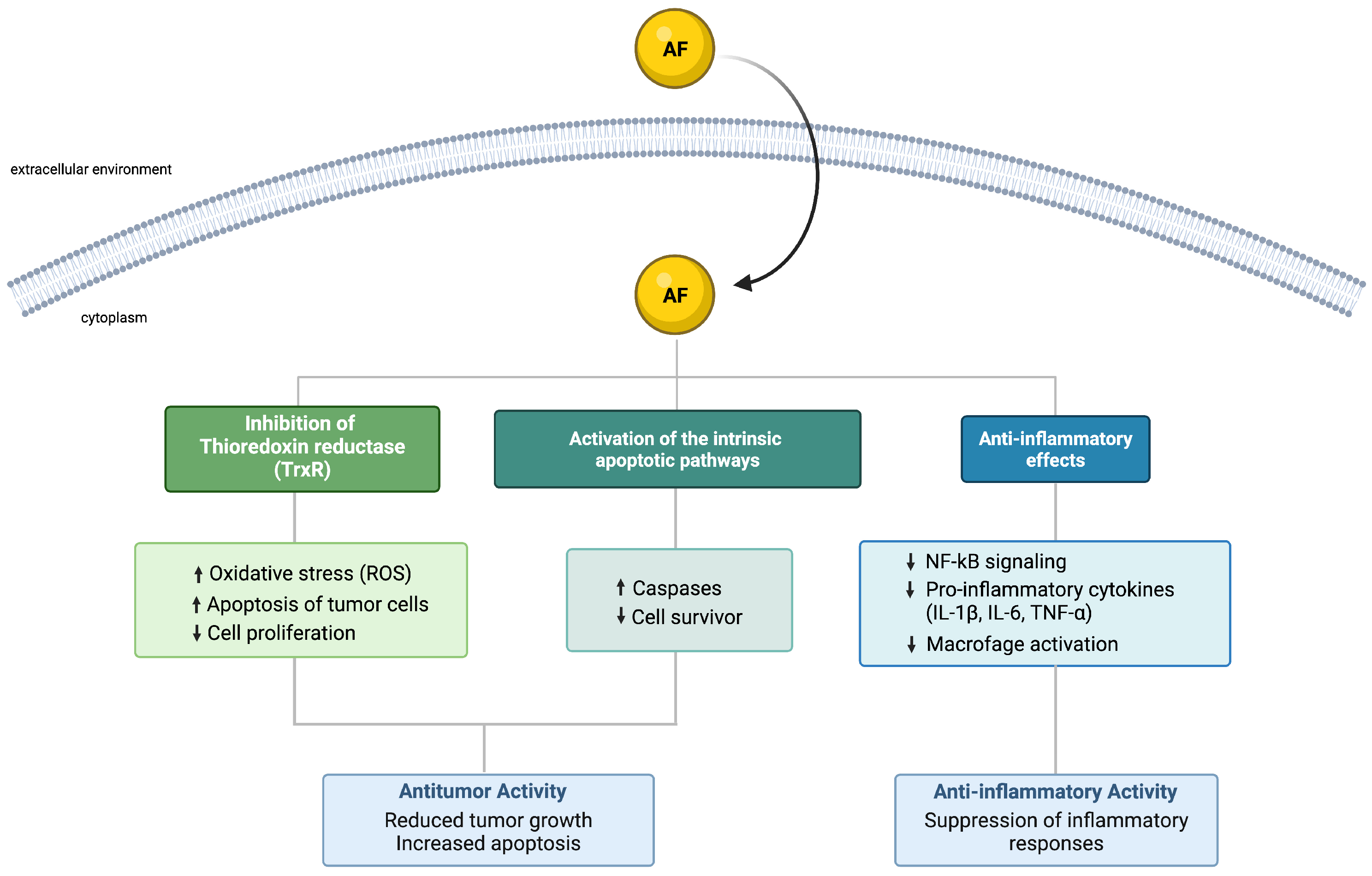 - Gamberi, T.; Chiappetta, G.; Fiaschi, T.; Modesti, A.; Sorbi, F.; Magherini, F. Upgrade of an Old Drug: Auranofin in Innovative Cancer Therapies to Overcome Drug Resistance and to Increase Drug Effectiveness. Med. Res. Rev. 2022, 42, 1111–1146. [Google Scholar] [CrossRef] [PubMed]