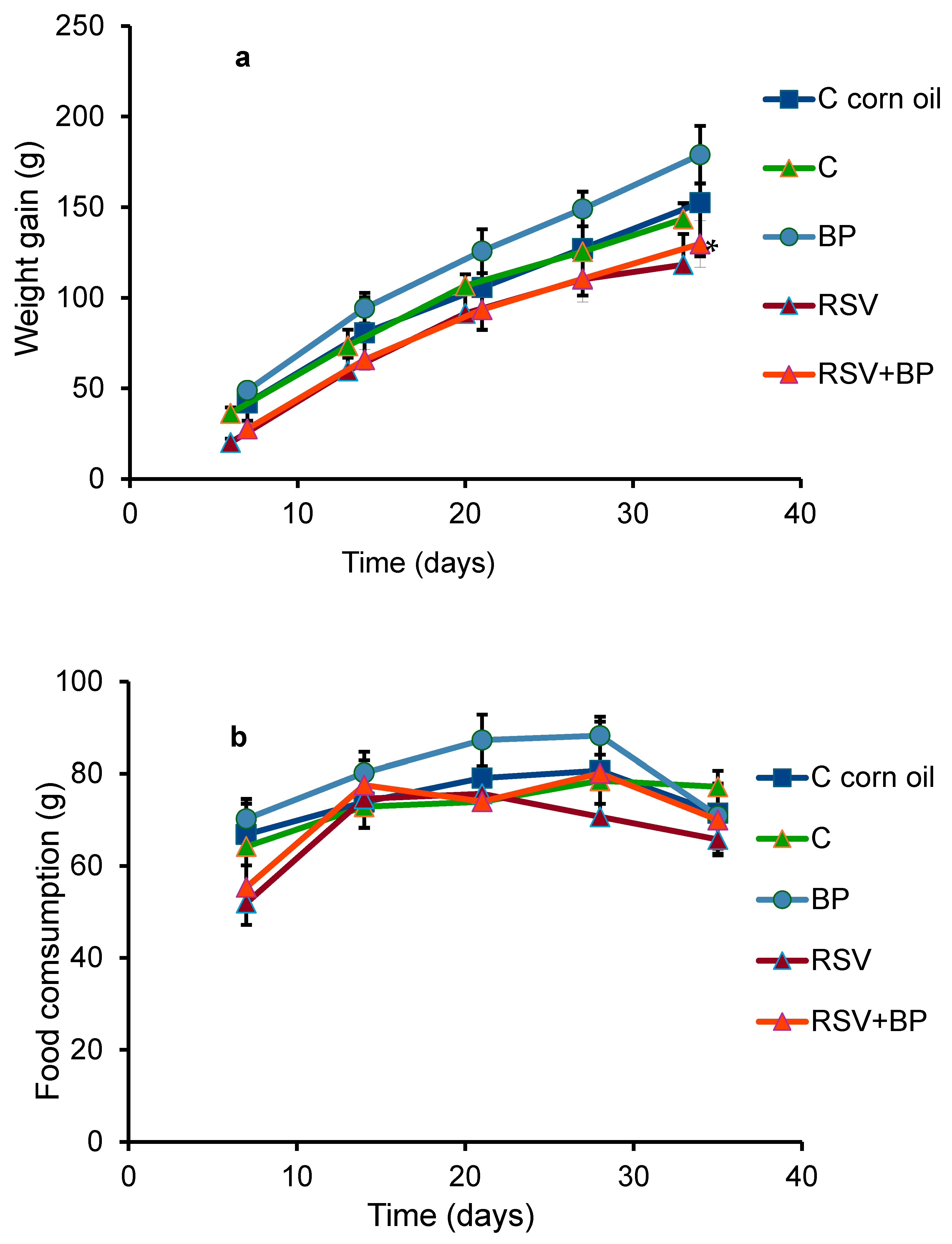 Although the RSV-treated group showed a reduction in body weight gain compared to controls (