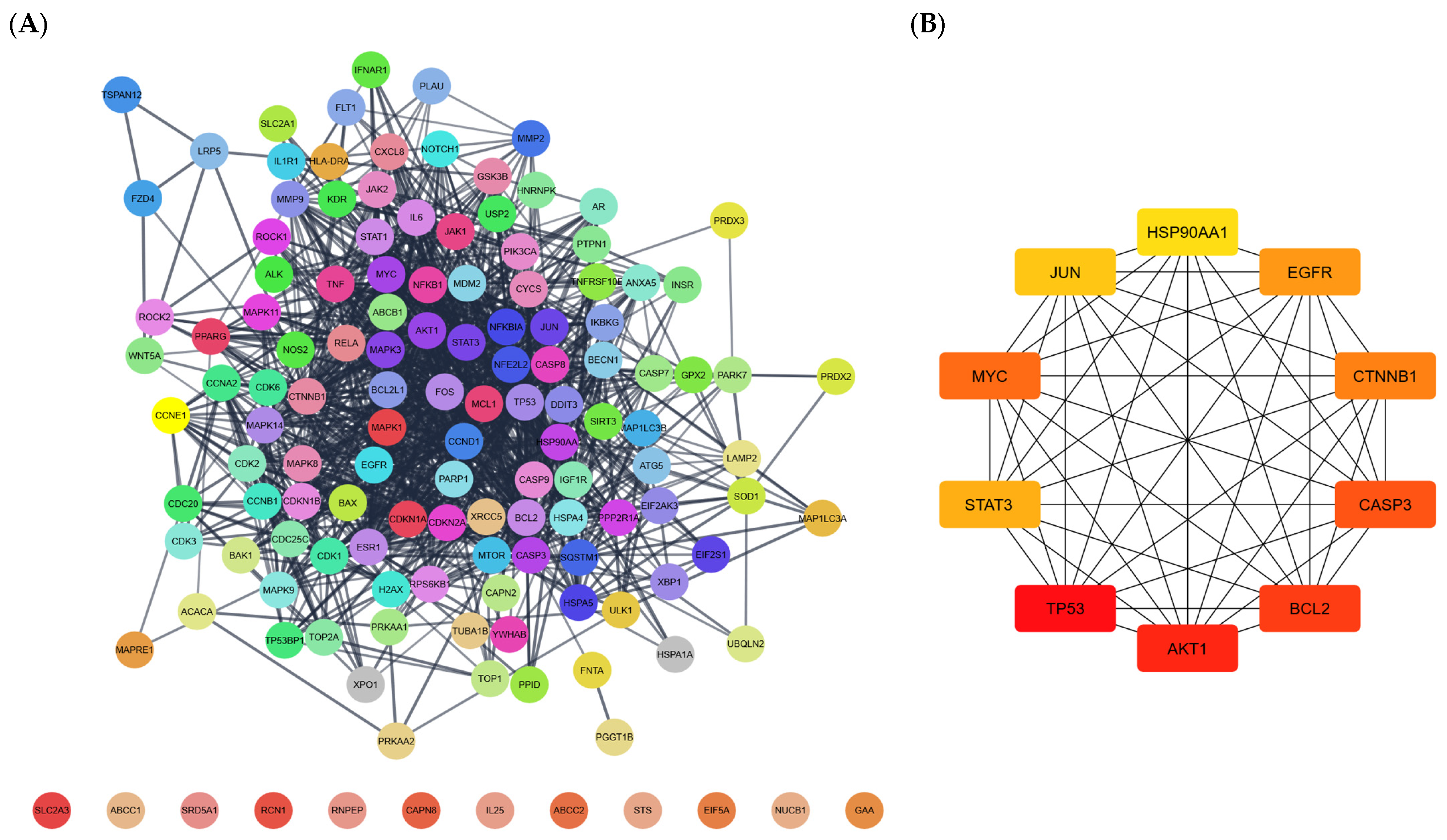 2.3. Protein–Protein Interaction (PPI) Network Construction