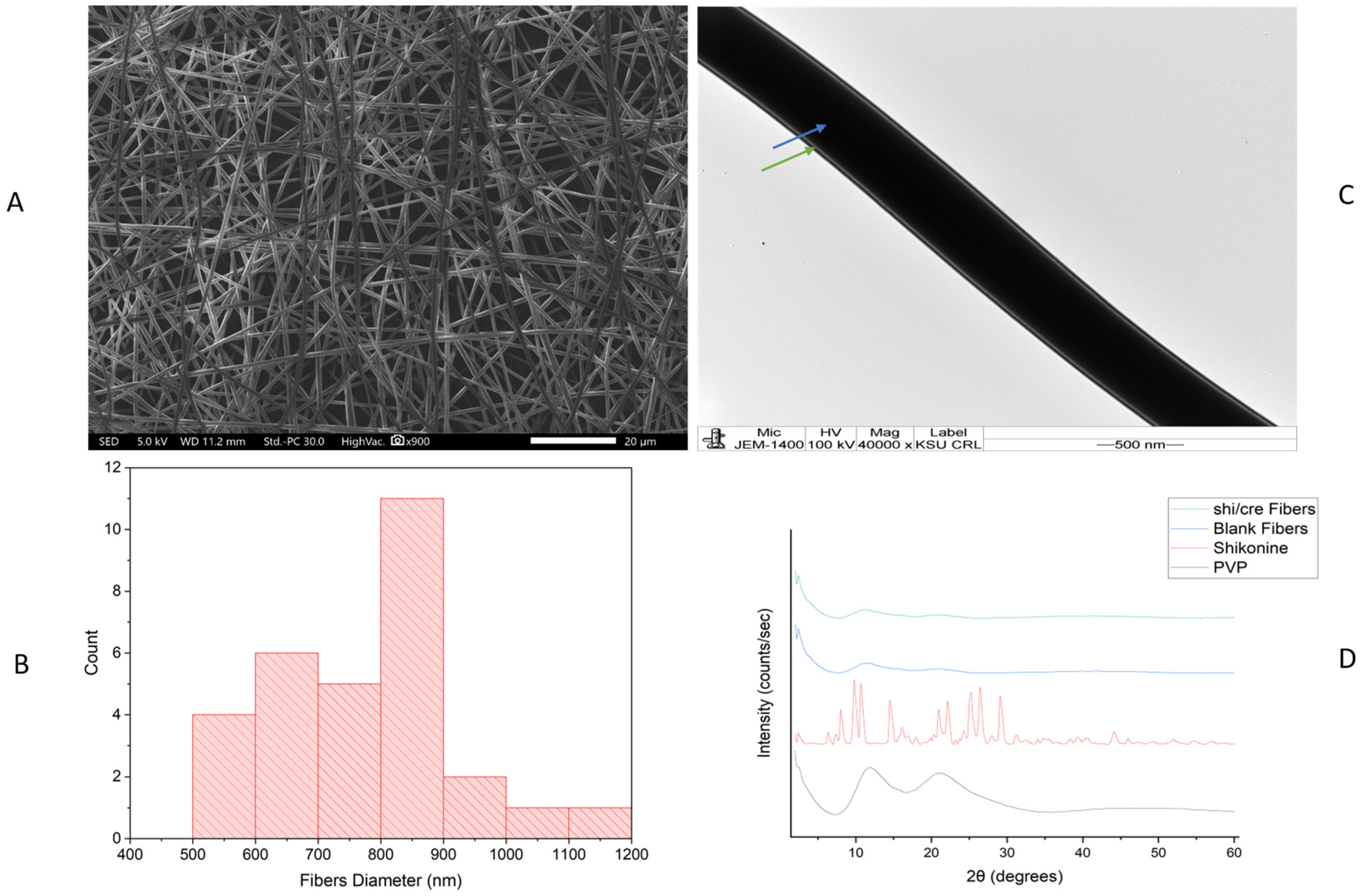 APA StyleAlsulaihem, F. M., Bakr, A. A., Alnefaie, M. K., Alshabibi, M. A., Alshehri, A. A., Almughem, F. A., Alsudir, S. A., Alamer, A. A., Alshehri, B. Y., Alzahrani, D. A., Aleanizy, F. S., & Tawfik, E. A. (2025). Coaxial Electrospun Nanofibers of Shikonin and Cresol as Antibacterial Wound Dressing. Pharmaceuticals, 18(11), 1642. https://doi.org/10.3390/ph18111642