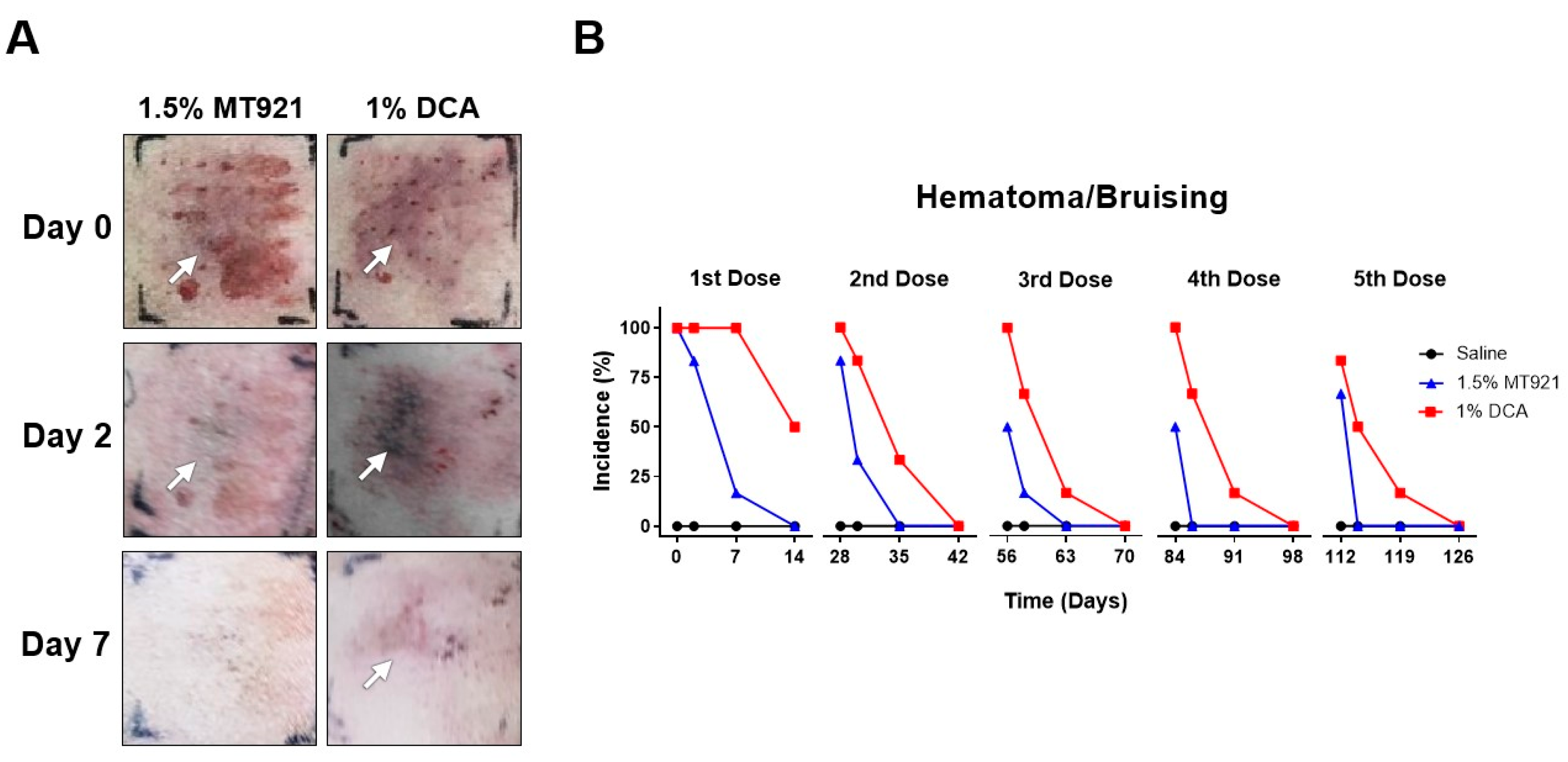 2.2.3. Skin Adverse Reactions Caused by 1.5% MT921 and 1% DCA s.c. Injections
