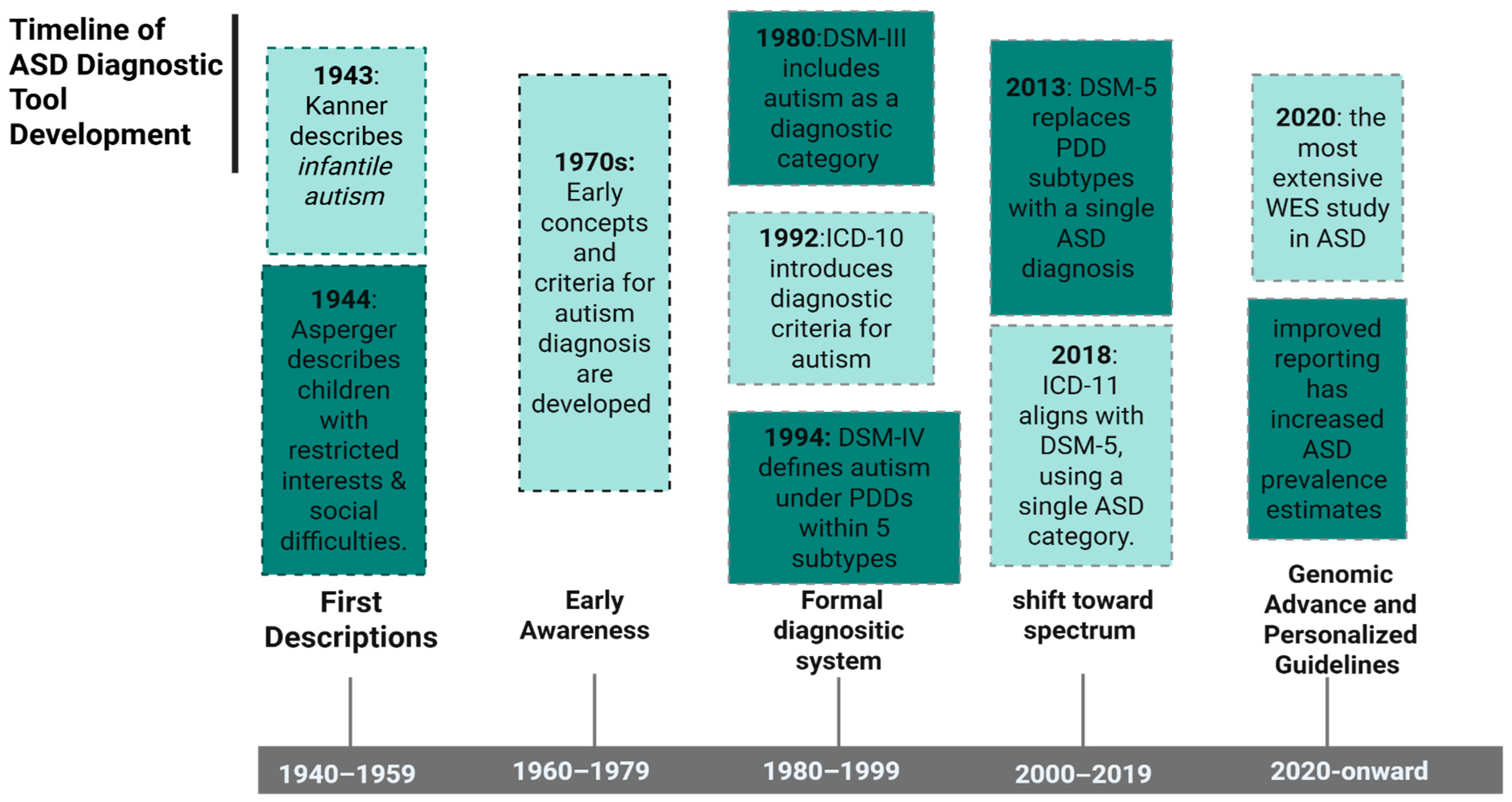 - Rosen, N.E.; Lord, C.; Volkmar, F.R. The diagnosis of autism: From Kanner to DSM-III to DSM-5 and beyond. J. Autism Dev. Disord. 2021, 51, 4253–4270. [Google Scholar] [CrossRef]