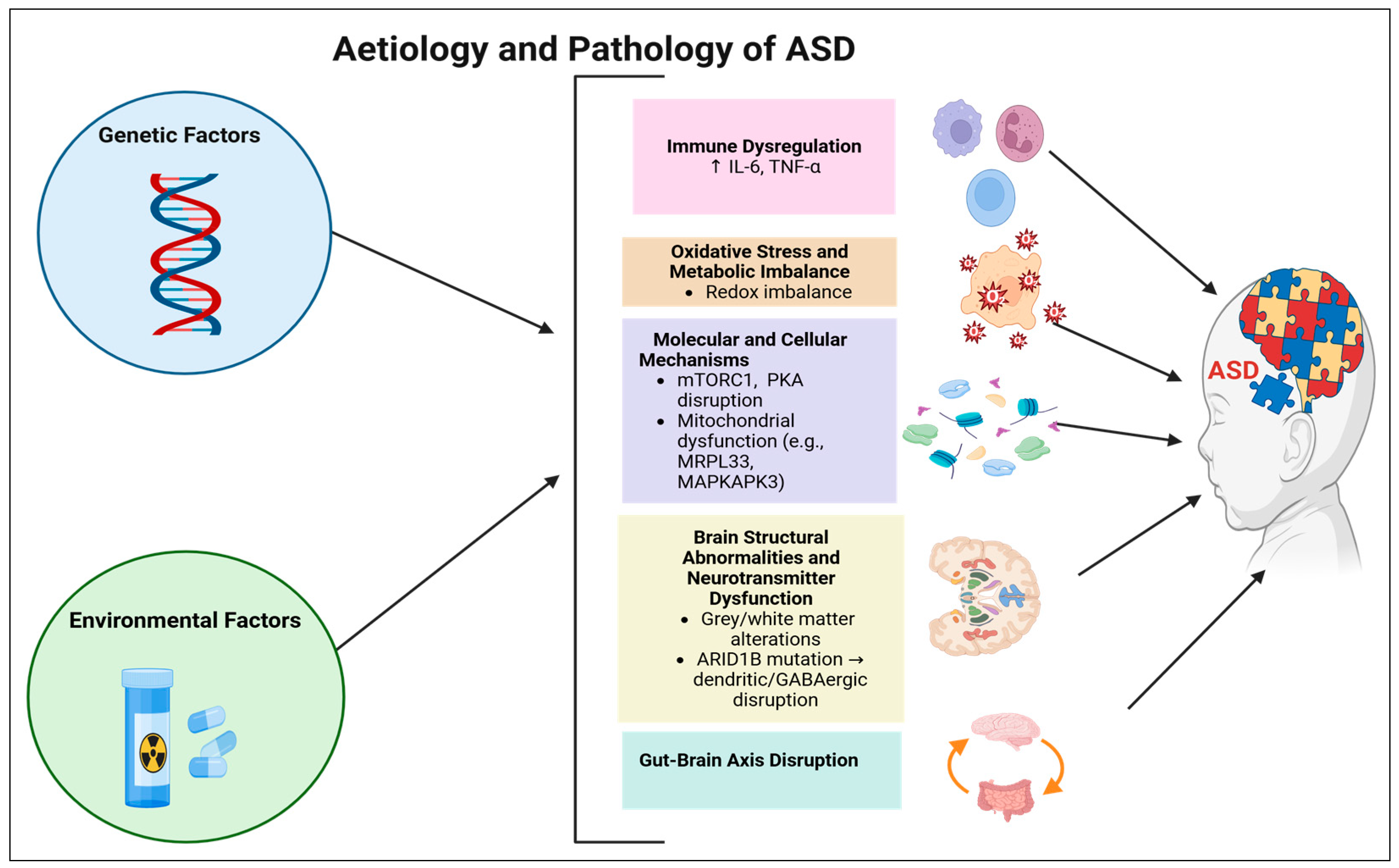 Aljead, M.; Qashta, A.; Jalal, Z.; Jones, A.M. Review of Autism Spectrum Disorder (ASD): Epidemiology, Aetiology, Pathology, and Pharmacological Treatment. Pharmaceuticals 2025, 18, 1644. https://doi.org/10.3390/ph18111644