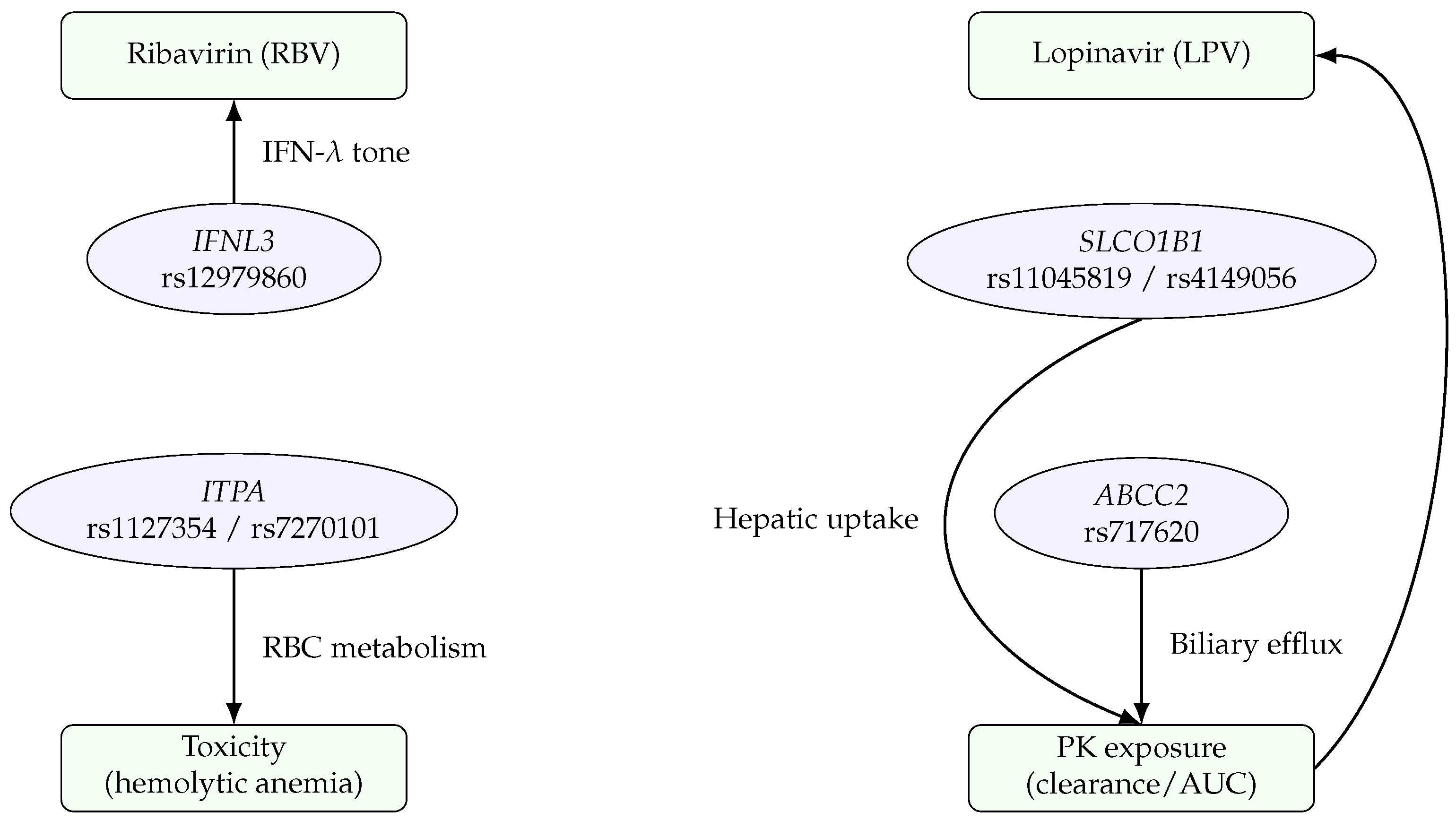 - Design phase I–II genotype-stratified clinical trials for ribavirin or lopinavir combinations, recruiting participants based on their IFNL3, ITPA, or transporter genotypes.