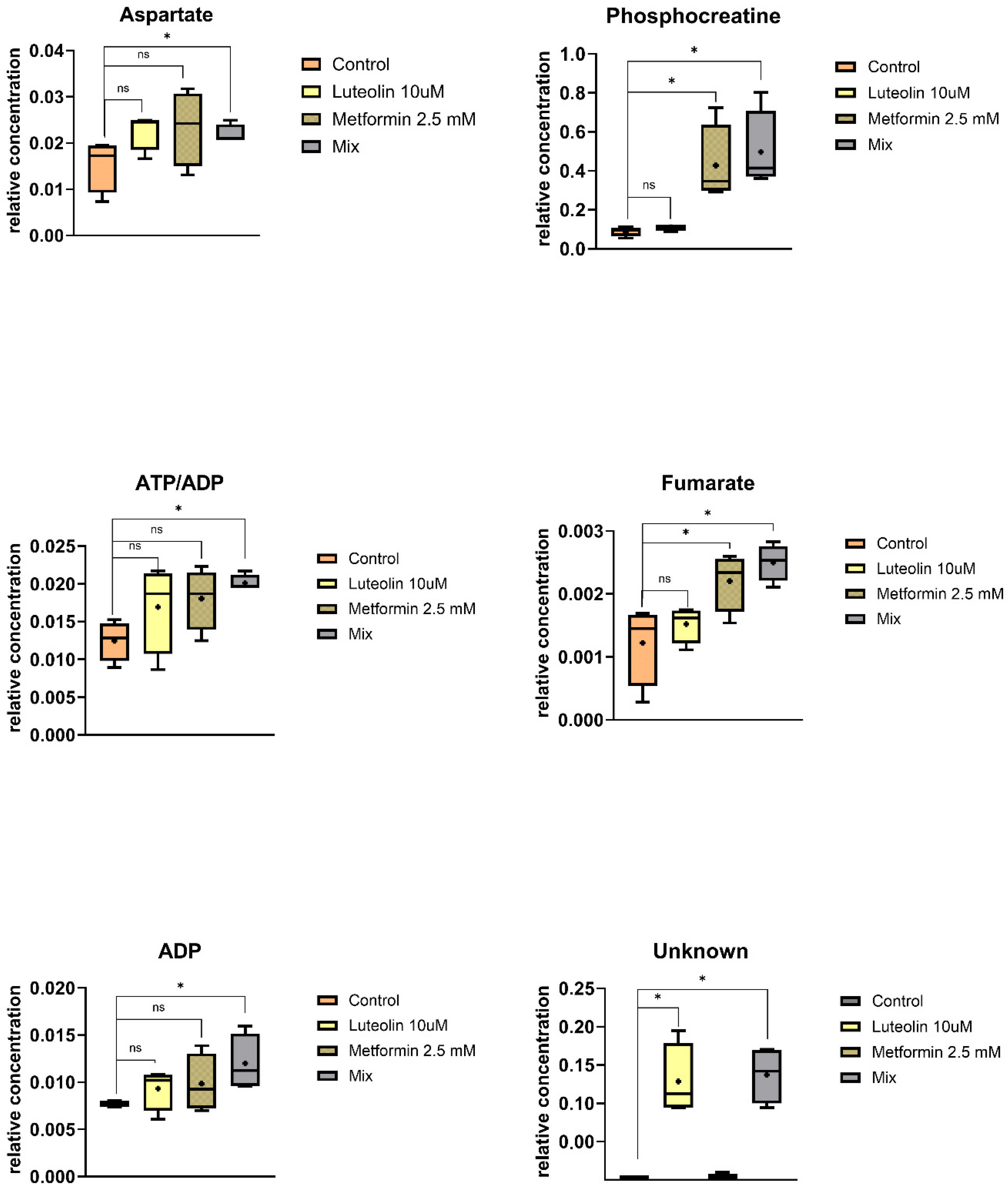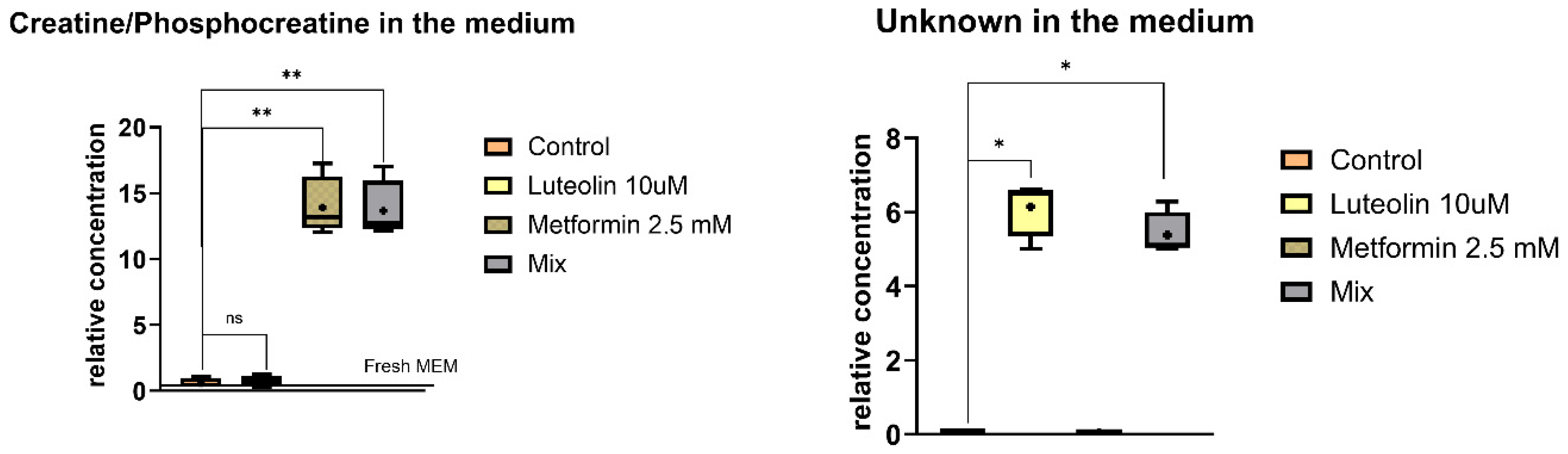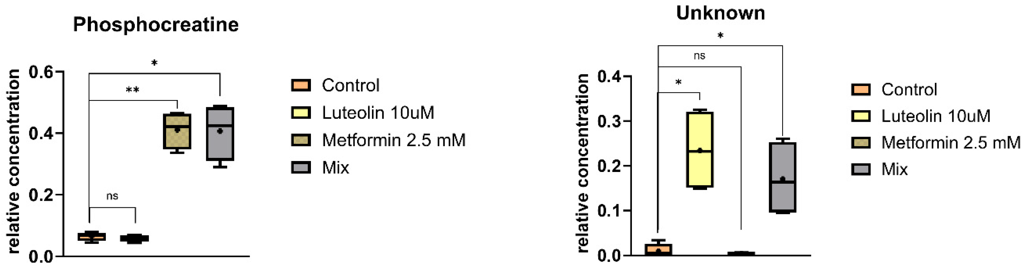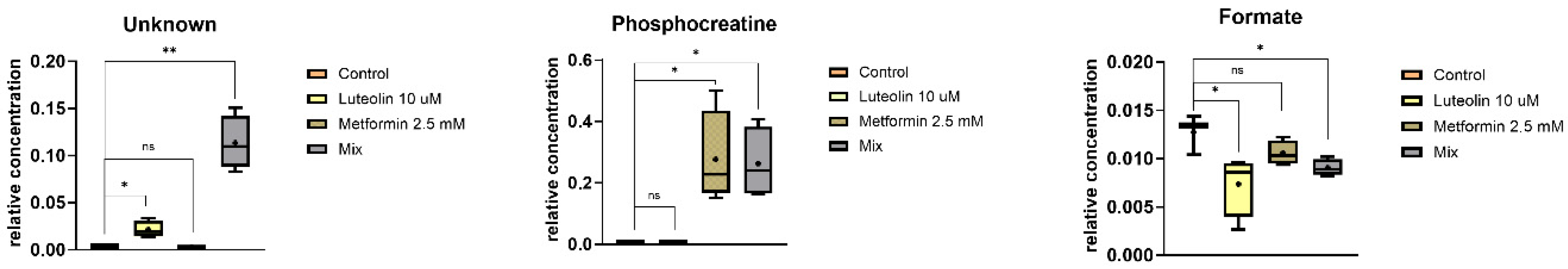 2.5. Metabolite Relative Concentrations and Statistical Analysis