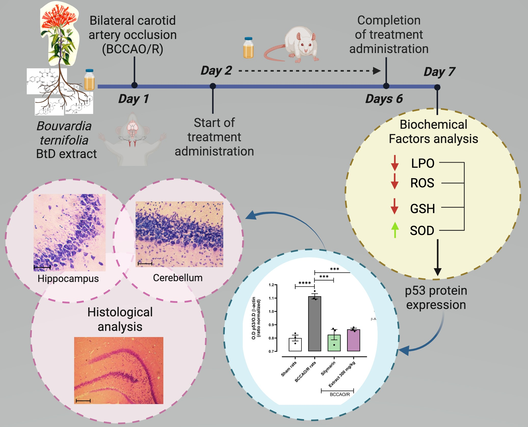 - Group IV (BCCAO/R+BtD): Rats subjected to BCCAO/R and treated with dichloromethane root extract of Bouvardia ternifolia (BtD) at 300 mg/kg.