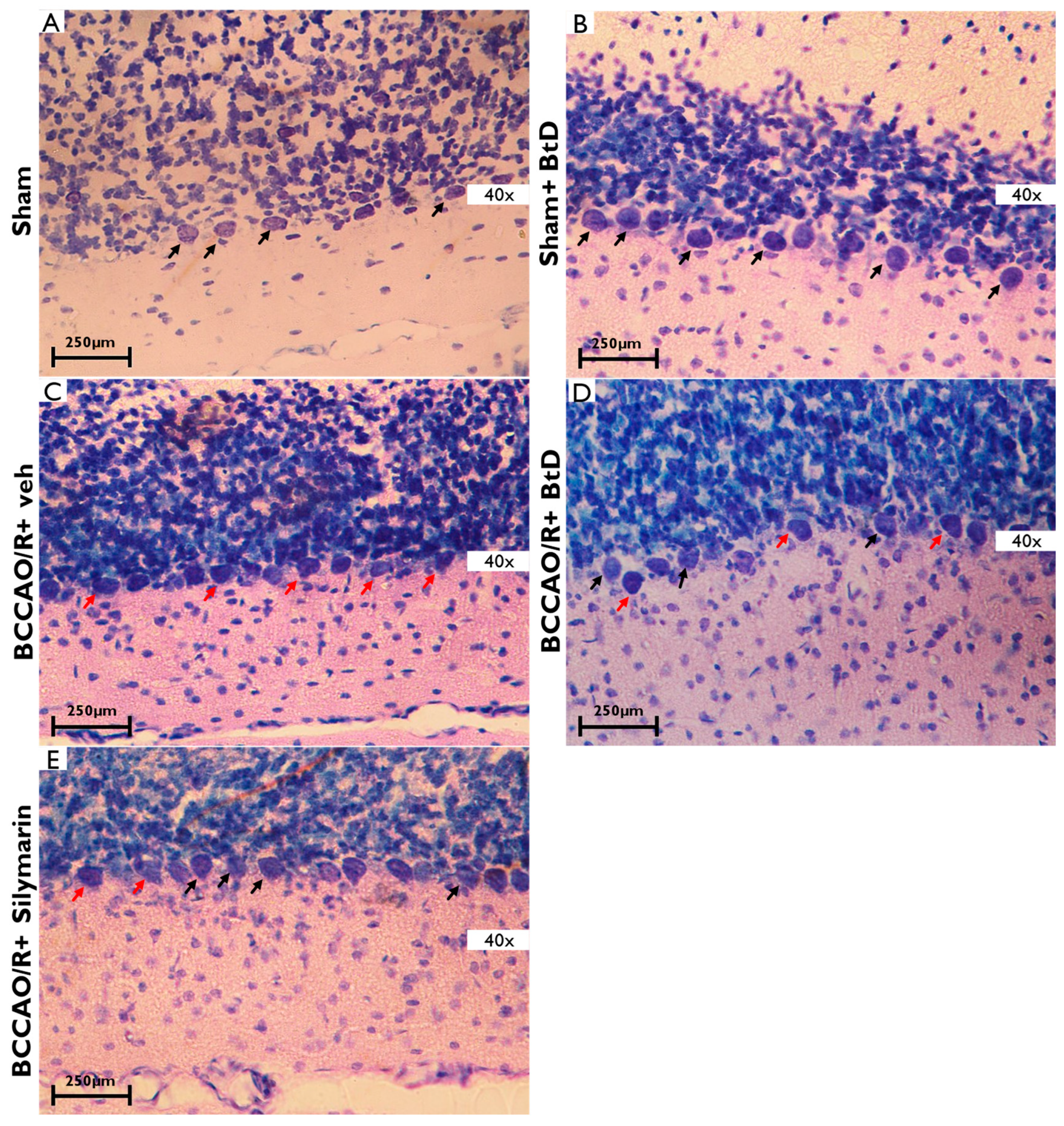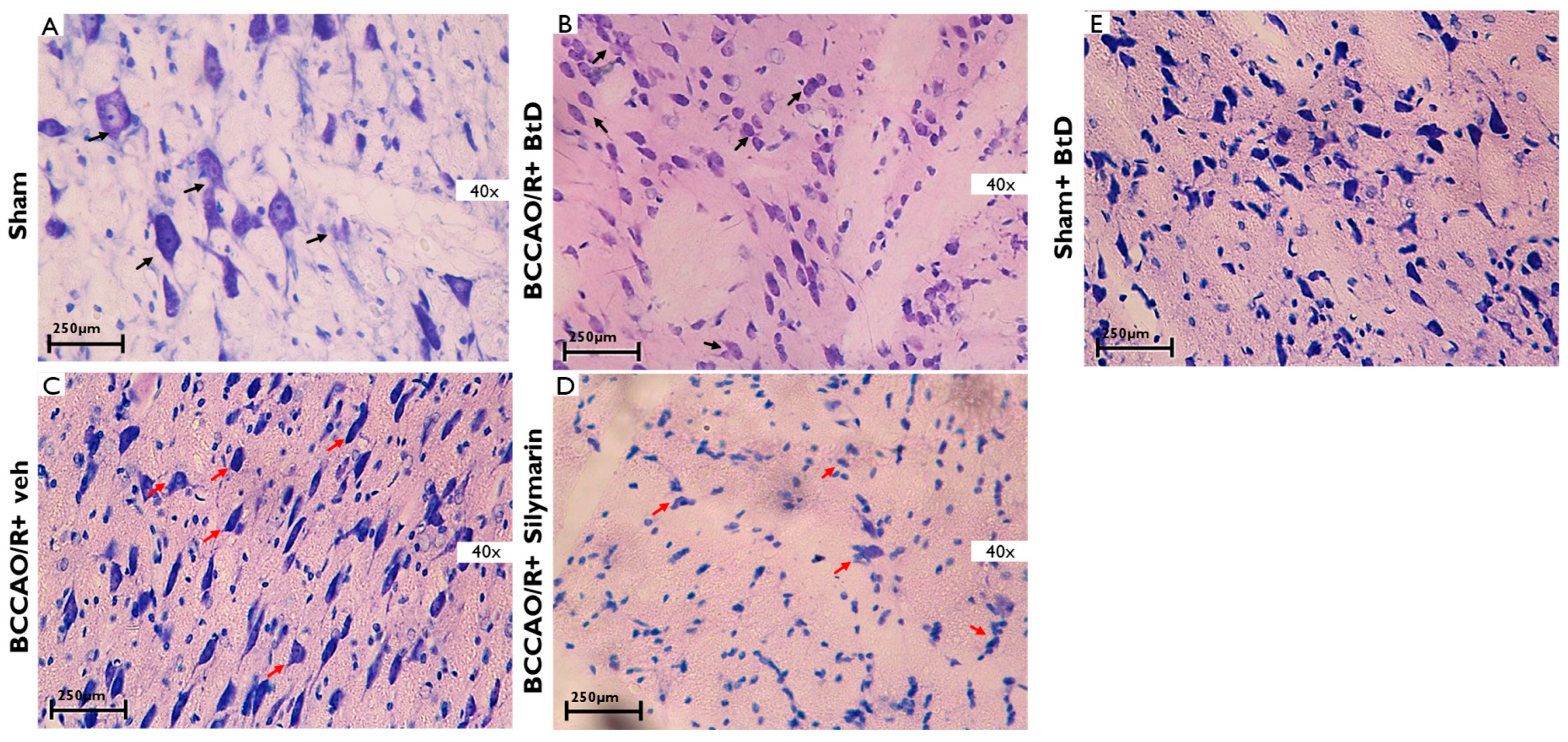 - Group III (BCCAO/R+silymarin): Rats subjected to BCCAO/R and treated with silymarin at 50 mg/kg [46].