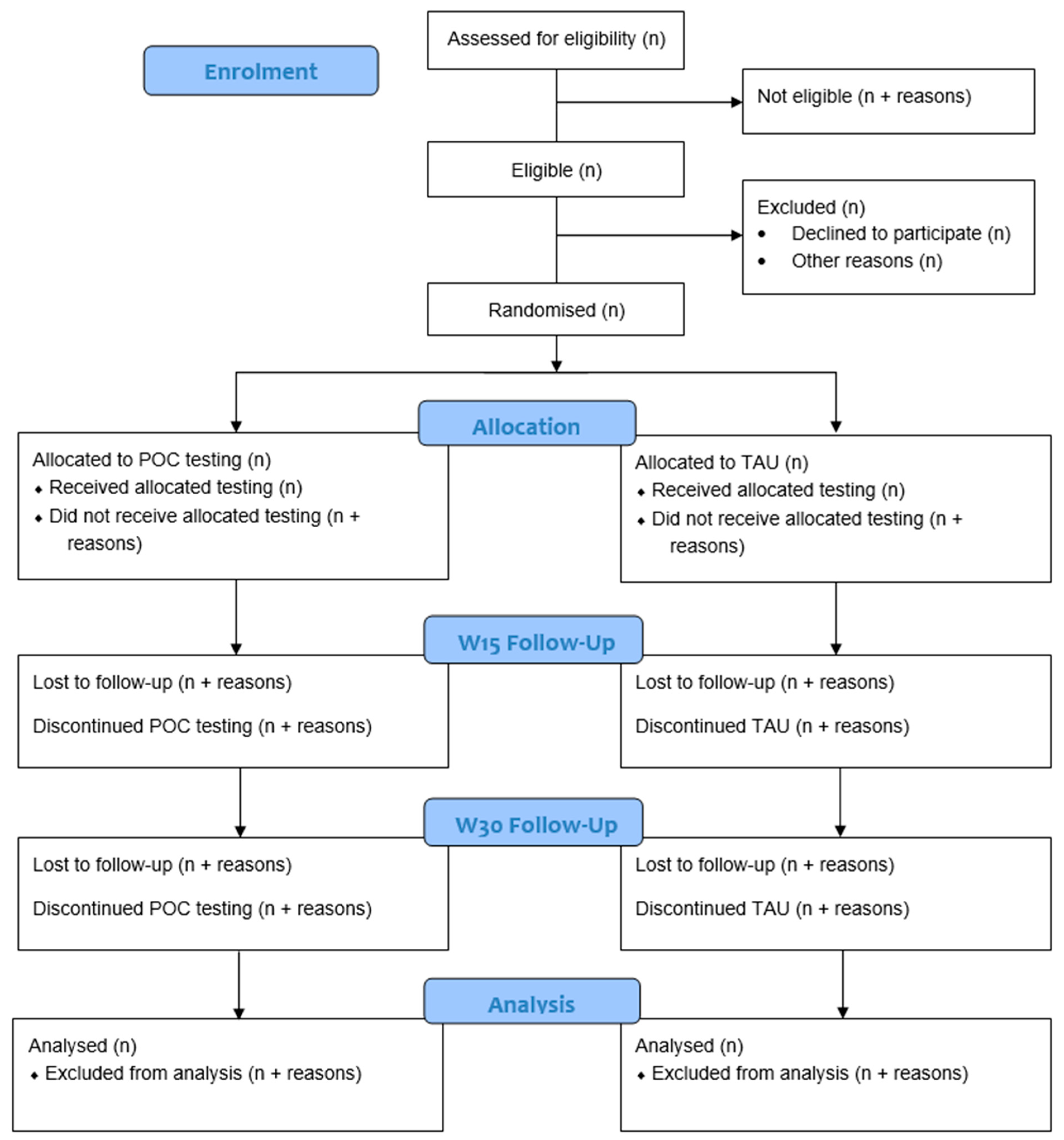 Participants randomised to TAU will not receive any change to testing and will continue via laboratory testing as usual.