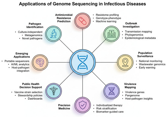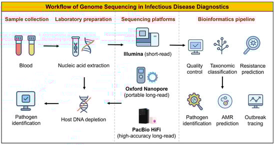 - Oehler, J.B.; Burns, K.; Warner, J.; Schmitz, U. Long-Read Sequencing for the Rapid Response to Infectious Diseases Outbreaks. Curr. Clin. Microbiol. Rep. 2025, 12, 10. [Google Scholar] [CrossRef] [PubMed]