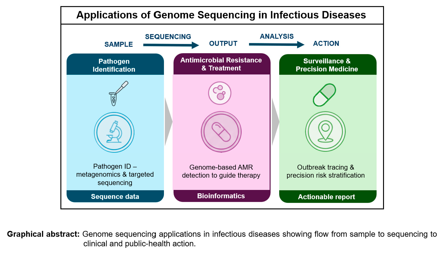 Genome sequencing of infectious diseases has reached a level of maturity in which many of the obstacles to its larger-scale adoption are less technical than they are organizational, interpretive, and social. Advances in portable platforms, automation, and AI-assisted analytics will enable faster, bedside sequencing with real-time interpretation [