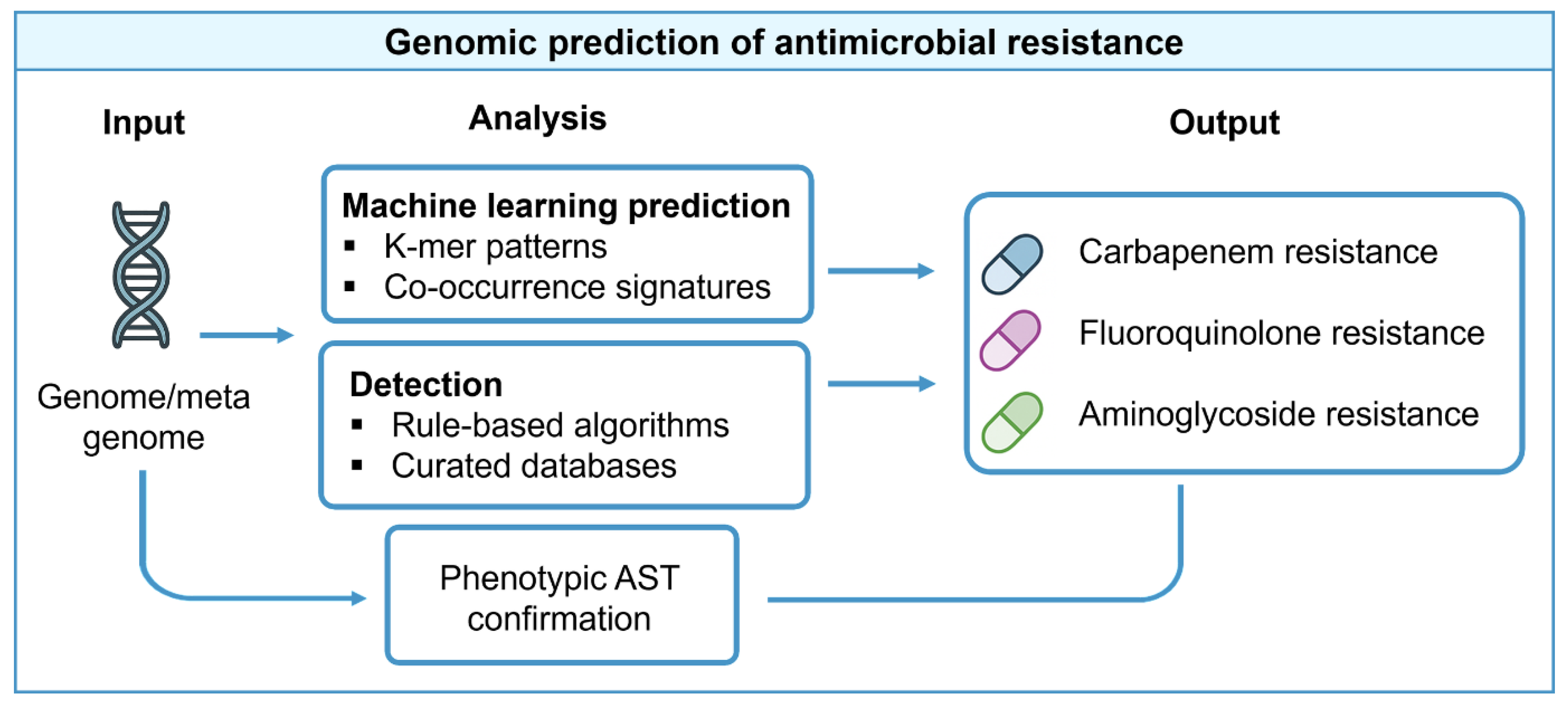 34]. The workflow linking genomic inputs to resistance phenotype prediction is illustrated in
